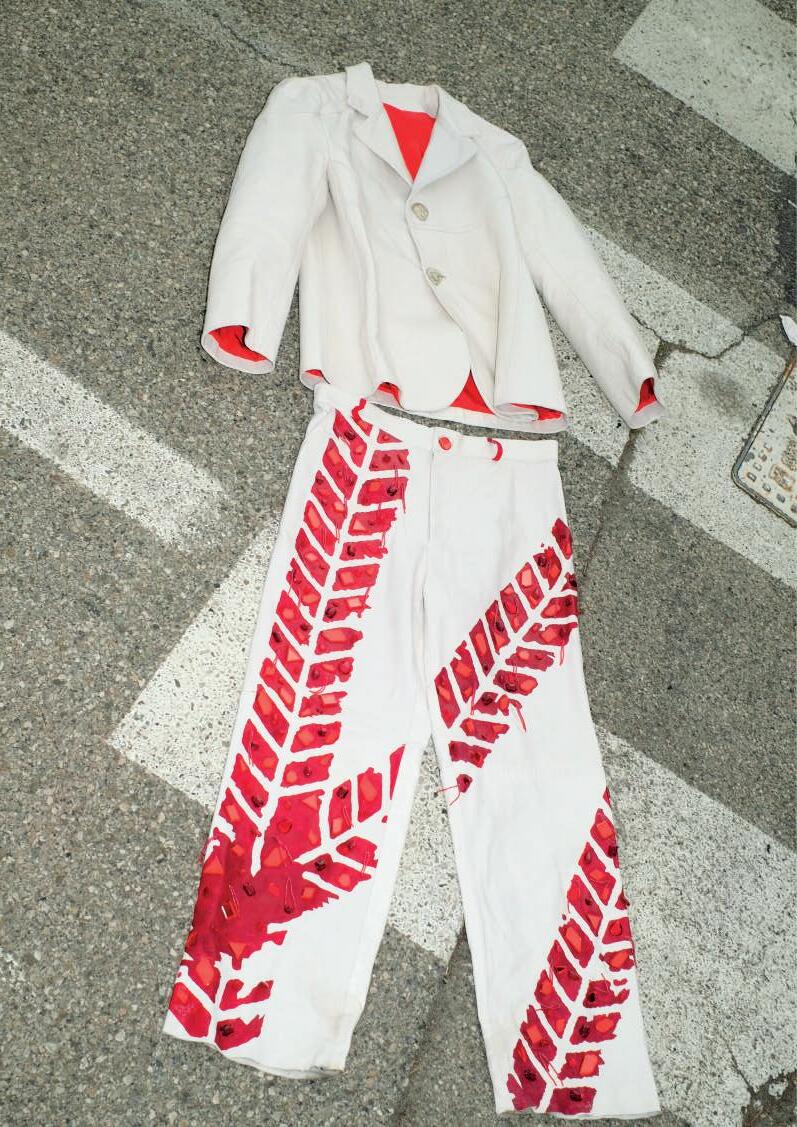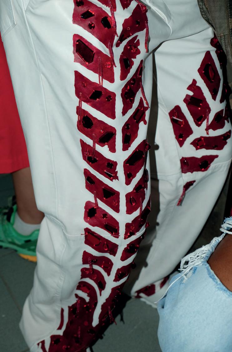 LEATHER MOTO.JACKET MUD-BLOOD EMBR. SEQ. PANTS