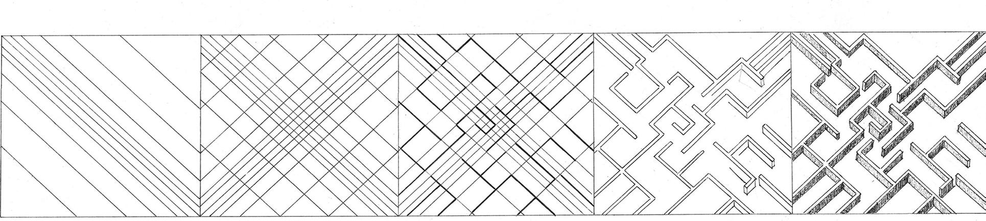 1 - Complejidad espacial, ejercicio compositivo dibujado a mano, 2018 (RomaTre).
