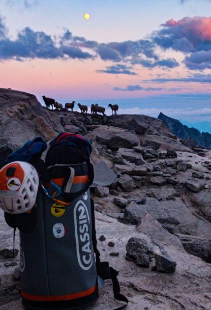 LO ZAINO n. 18 - Autunno 2022: Matteo Bertolotti, Marcello Noseda, Manuel Porro, Antonio Radice, Davide Martini, Fabio Cammelli, Carlo Piovan, Saverio D’Eredità, Marco Berti, Beppe Guzzeloni, Diego Filippi, Matthias Stefani, Eugenio Maria Cipriani, Angelo Lìbera, Gino Montipò, Walter Polidori. Hanno collaborato: Antonio Montani, Alessandro Gogna, Valter Pasquetto, Marina Pasquetto, Giona Pasquetto, Matteo Della Bordella, François Cazzanelli, Arianna Proserpio, Emilio Aldeghi, Fabrizio Manoni, Federica Mingolla, Francesco Bruschi, Gianpaolo Montermini, Dario Eynard, Martino Peterlongo, Federico Canobbio, Christian Confente, Manuel Leorato, Claudio “Caio” Getto, Giorgio Pozzoni, Diego Dellai, Marco Toldo, Gruppo Roccia 4 Gatti, Giuliano Bressan, Massimo Polato, Cristiano Zoppello, Luca Danieli, Giulia, Roberto Capucciati, Damiano Sessa, Tommaso Bacciocchi. Prossimo numero: LO ZAINO n. 19 - Primavera 2023: invia il tuo materiale a lom.cnsasa@gmail.com e will80@sassbaloss.com. In copertina: Marco Majori al Siula Grande lungo uno dei tiri finali del pilastro (foto di Matteo Della Bordella); a sinistra: Giulio Zanoli sulla via Sinergie alla Pietra di Bismantova (foto di Nicola Bertolani); pagina successiva: tramonto sulla Croda da Lago, Pelmo e Pelmetto, dai pressi della Forcella Fontananegra (foto di Fabio Cammelli); terza di copertina: Laura Bozzoli sul primo tiro della via Goduria alla Cima d’Ambiez (foto di Matteo Bertolotti). Supplemento a “Il Rosa – Giornale di Macugnaga e della Valle Anzasca” n° 2/2022 - Via Monte Rosa 75, 28876 Macugnaga (VB) – www. ilrosa.info – direttore responsabile: Paolo Crosa Lenz – Registrazione Tribunale di Verbania n° 295 - 29 novembre 1999