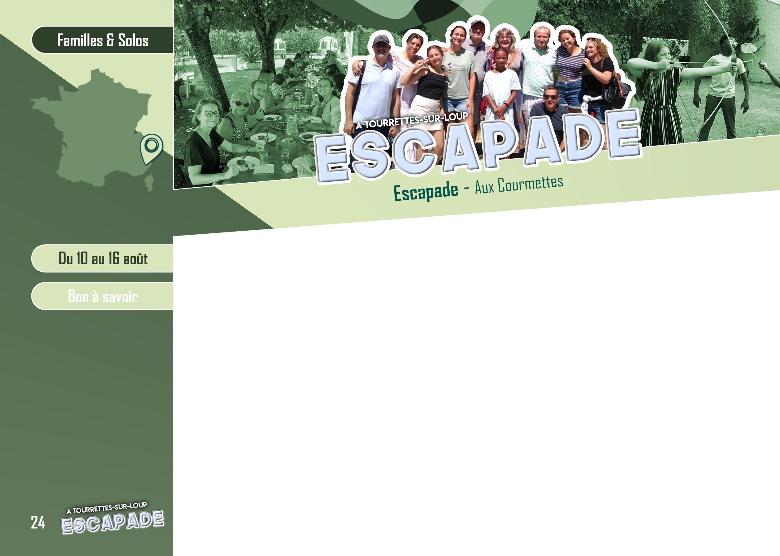 * 10 au 16 août Tourrettes -sur-loup (06) Solo (avec ou sans enfants) et Enfant** : 397 €, Couple : 794 € Options possibles pour les chambres : nous contacter