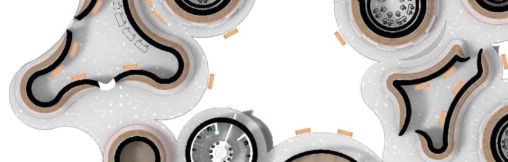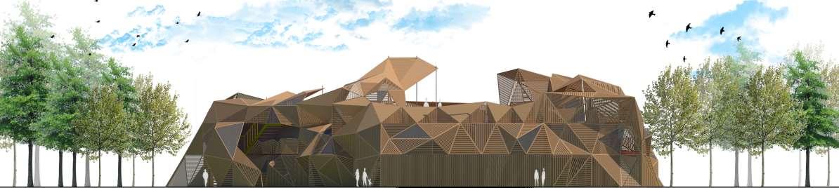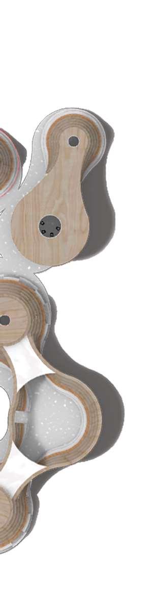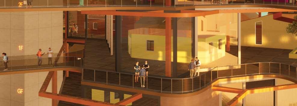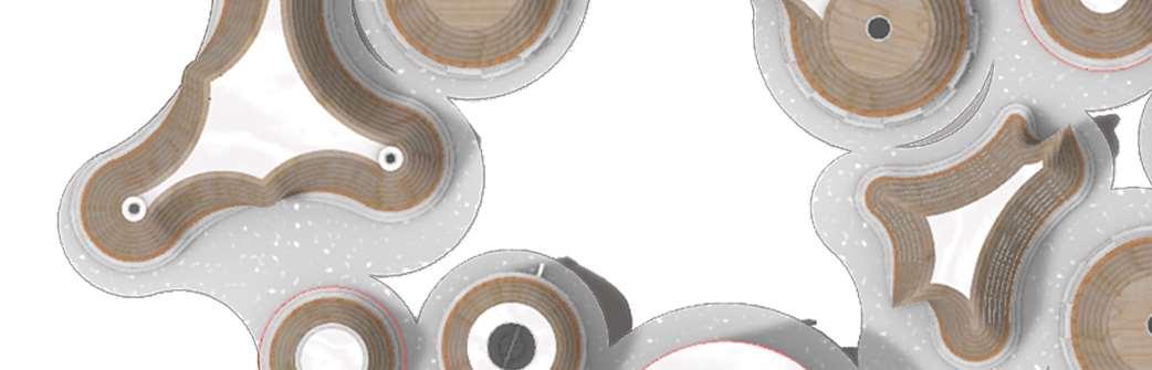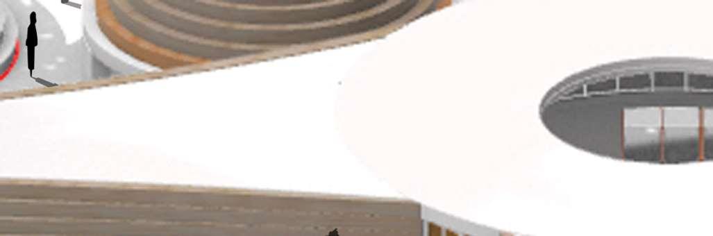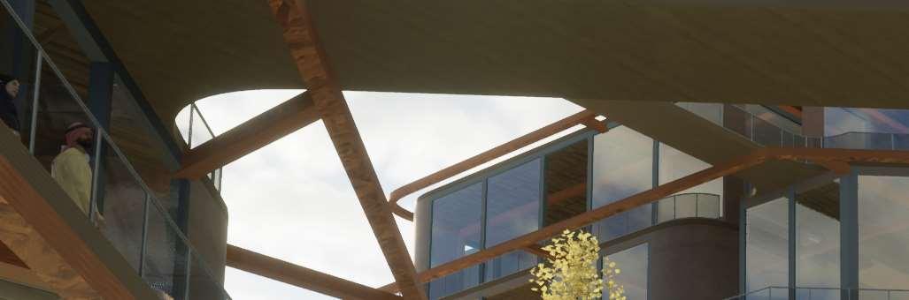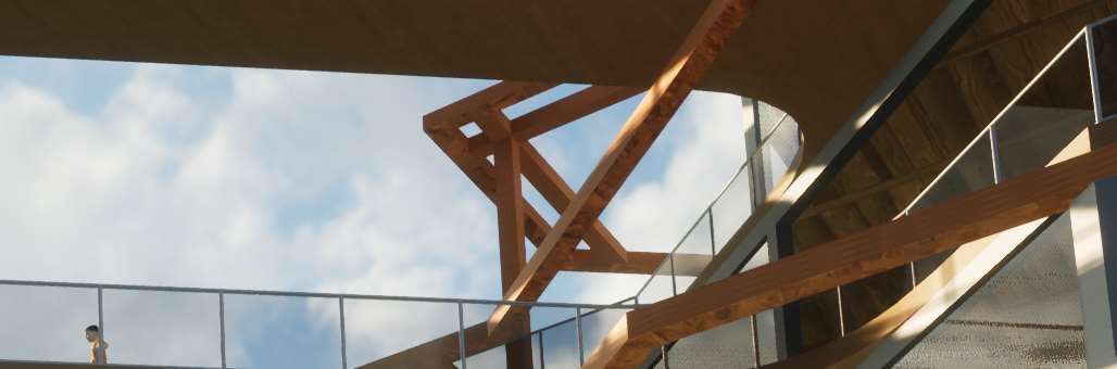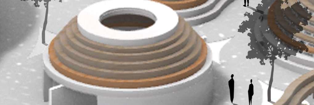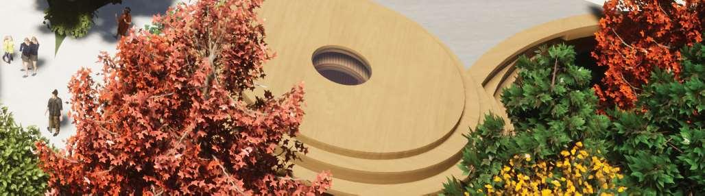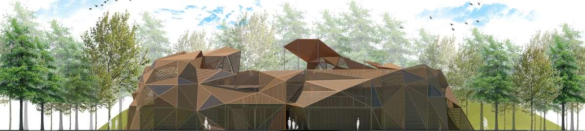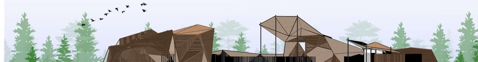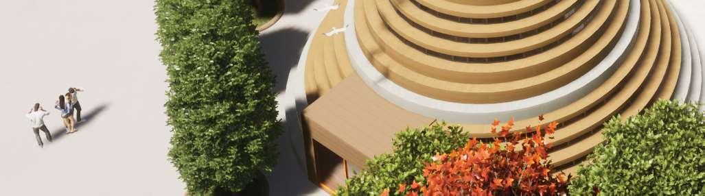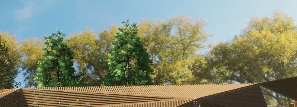 The organic shapes visually attract users to enter the biomes, seamlessly connecting them to the next zone. GLT and CLT are the main structural materials,promotinguseofsustainablematerials and construction from off-site prefabrication. Multiple small window slits form on the curved perimeterofthebiomes,mimickingthesmallcells in a plant, drawing natural light into the interior spaces.