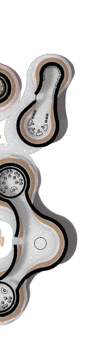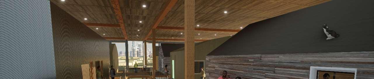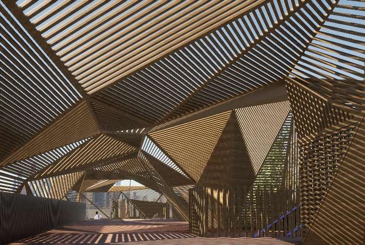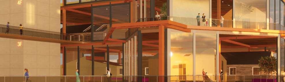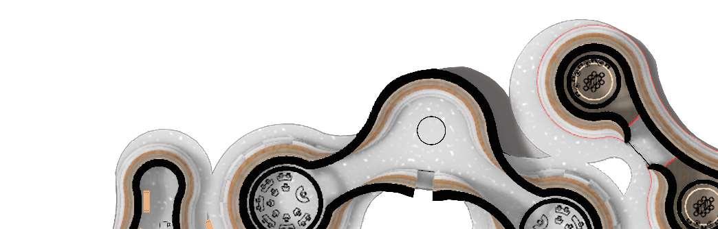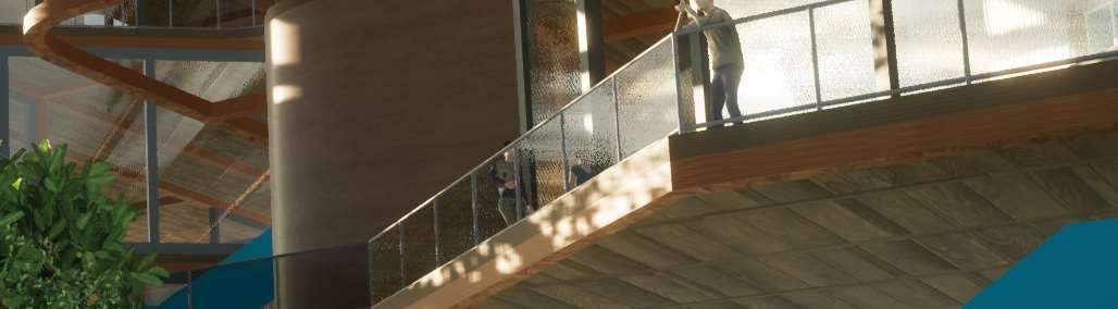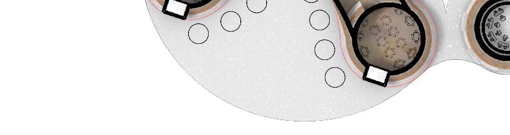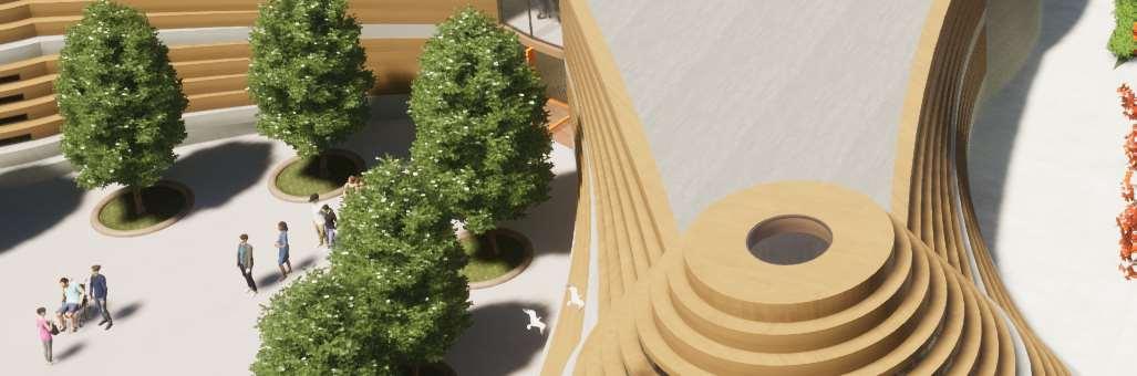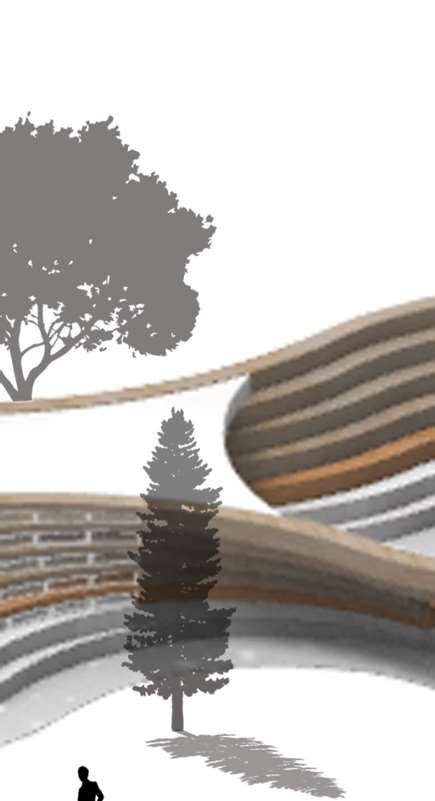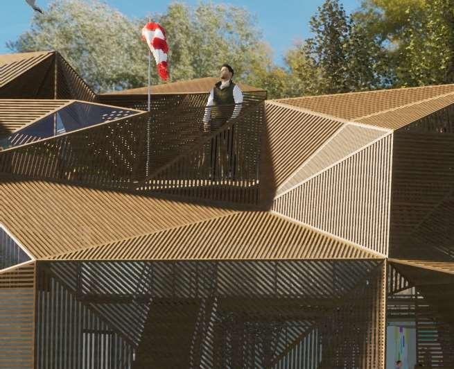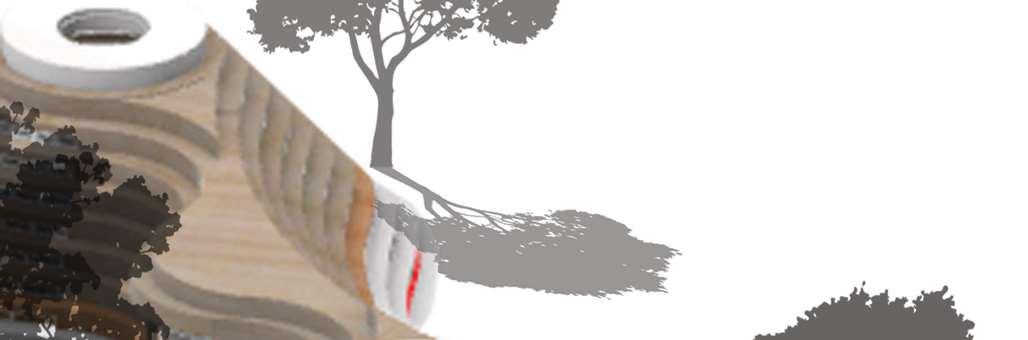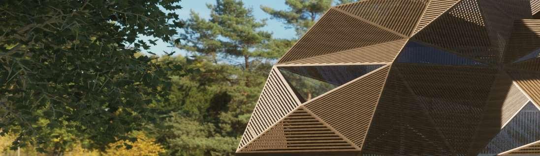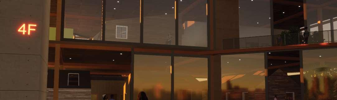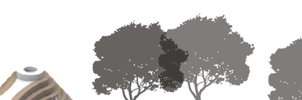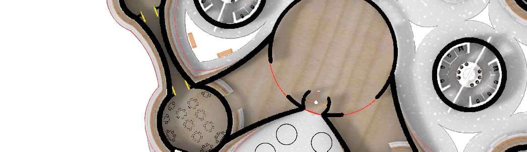The organic shapes visually attract users to enter the biomes, seamlessly connecting them to the next zone. GLT and CLT are the main structural materials,promotinguseofsustainablematerials and construction from off-site prefabrication. Multiple small window slits form on the curved perimeterofthebiomes,mimickingthesmallcells in a plant, drawing natural light into the interior spaces.