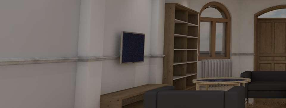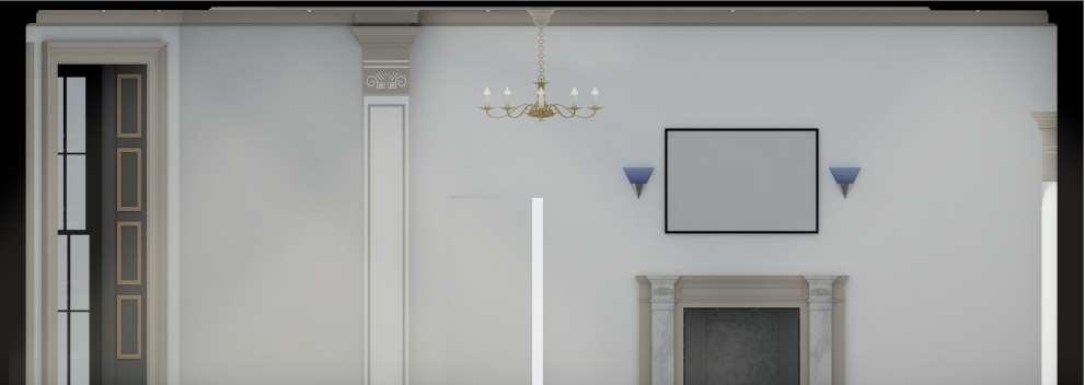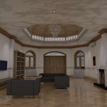 A personal project to explore the modelling and renderingcapabilitiesofArchiCAD,the vaulthall is a classically designed living room extension to an existing house. Featuring a vaulted ceiling and a chandelier as a centrepiece attraction of the room, the cornices and fireplace elevates the lookoftheroom,whilenaturallightseepsinfrom thevault.