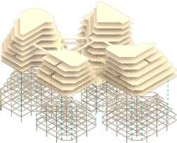 TheArchipelagosisconstructedwithsustainability in mind, with it’s superstructure built with GLT and CLT, whilst being supported by steel ties. Each home and studio in the towers are prefabricated, built off site and assembled on-site, fullycustomizableforeachuser.