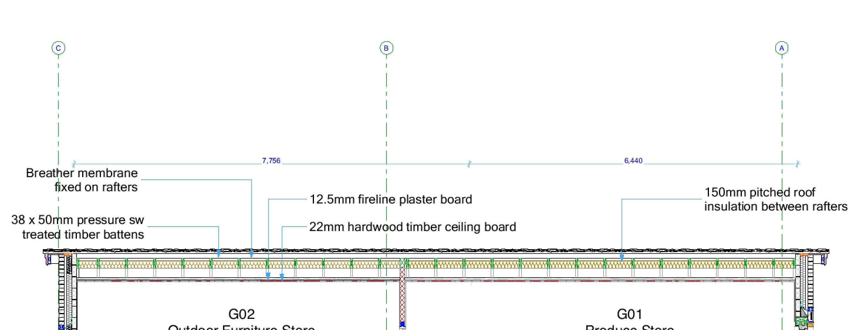 BSouthelevation ANorthelevation CCross-section GF1F A B C C 33