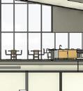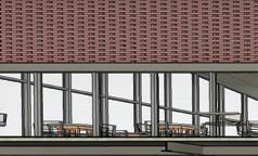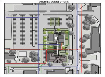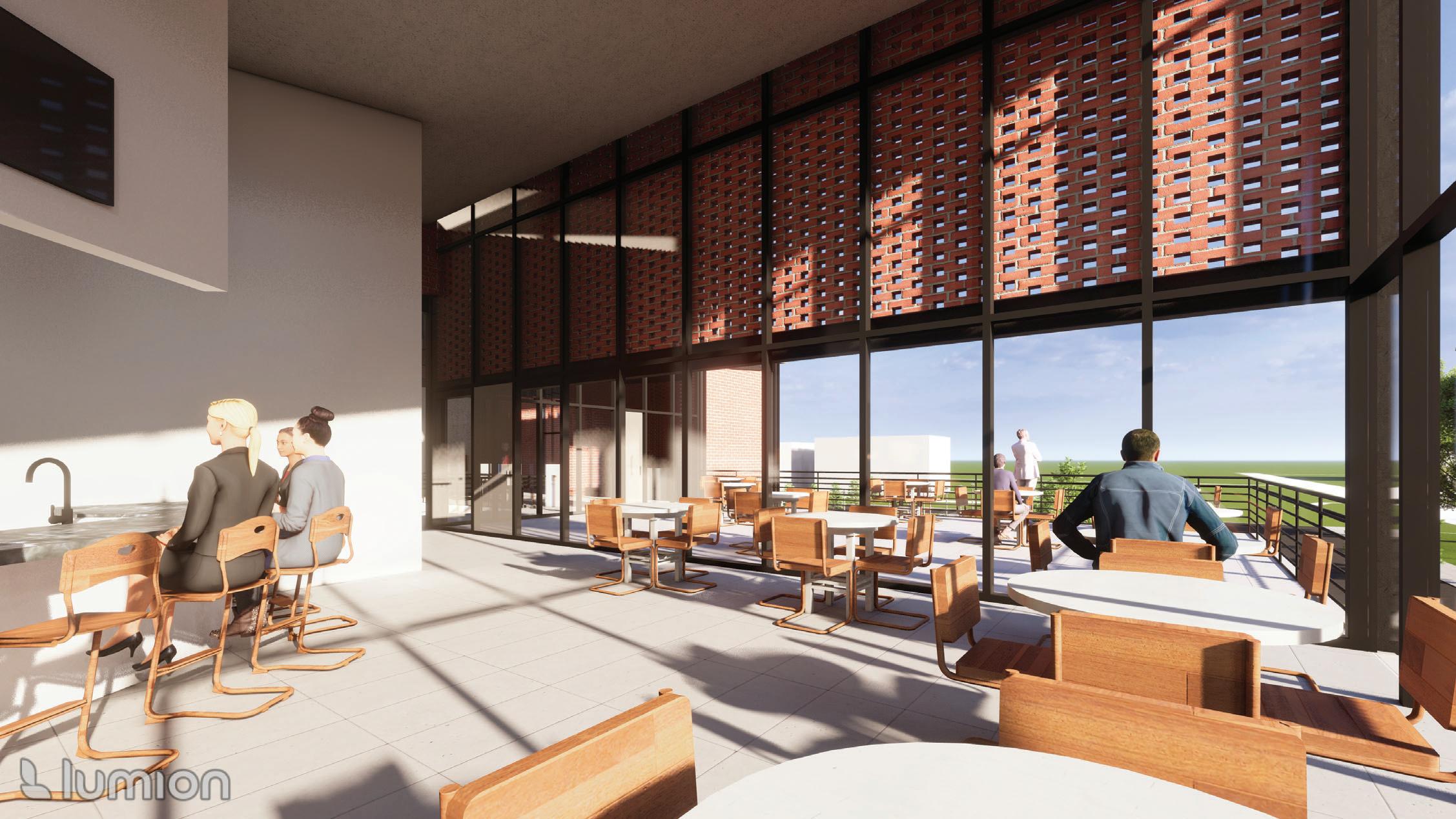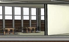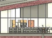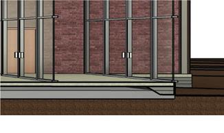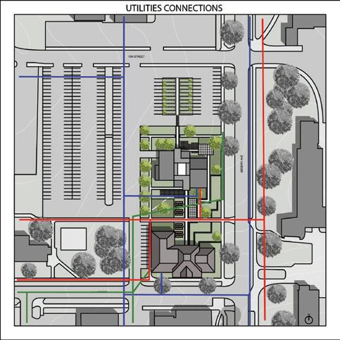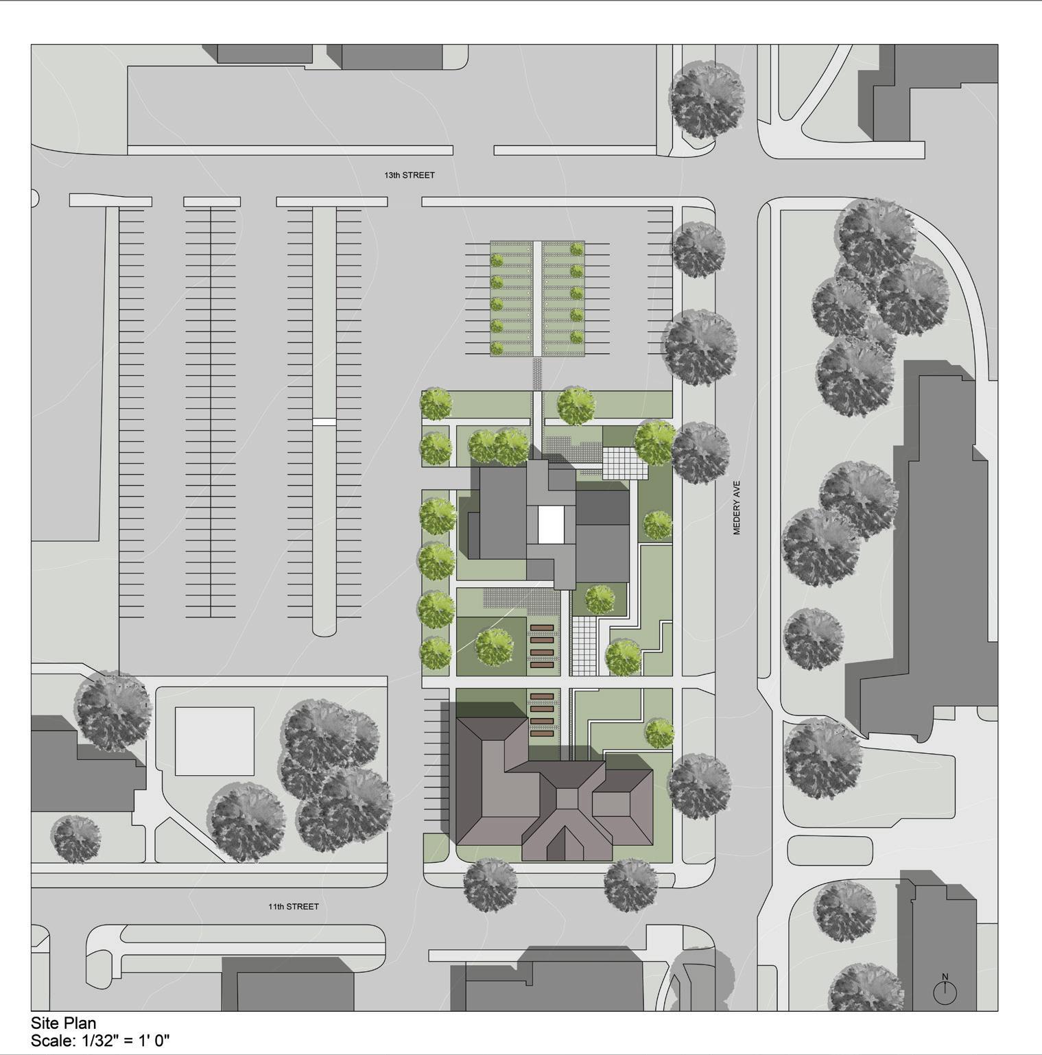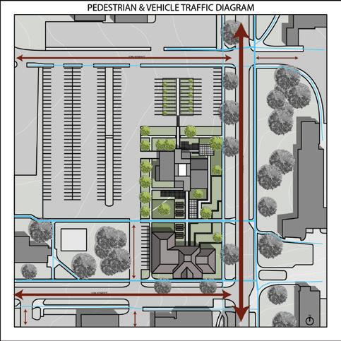 The entry to the new museum is a large continuation of the gallery space drawing a connection to the existing program. There is a prominent inviting entry on two sides, one from the existing museum (on the South) and one from the parking lot (North). The new building is separated from the existing museum allowing for more sunlight and minimizing the shadow effect that is cast from the existing structure. Circulation of the new museum continues the path started in the existing gallery (Gallery to Gallery). There is a main axis running through the main entry of the existing building to the entry of the new museum. The existing museum will lose the slaughter room and children’s area in order to create a new ramping space made of glass and steel in order to create a visual connection to the new museum when entering the old. The new addition is comprised of an exposed steel structure and brick to draw some similarity to the existing but still distinguish itself as new and different. The East elevation is mainly comprised of glass to allow views out toward campus and draw attention from the main street (Medary Ave). Consumer spaces like the Café and gift shop are located on entry level. Educational spaces such as the demonstration kitchen and auditorium are located on the upper floor. Existing pedestrian paths are not impeded or changed to allow travel to continue as it was. Form, Geometry, and Proportion/scale is complimentary to the “old” building (specifically addressing the east side where most pedestrian and vehicular traffic would view). Roof shape draws some connection to the old roof system without trying to replicate it.