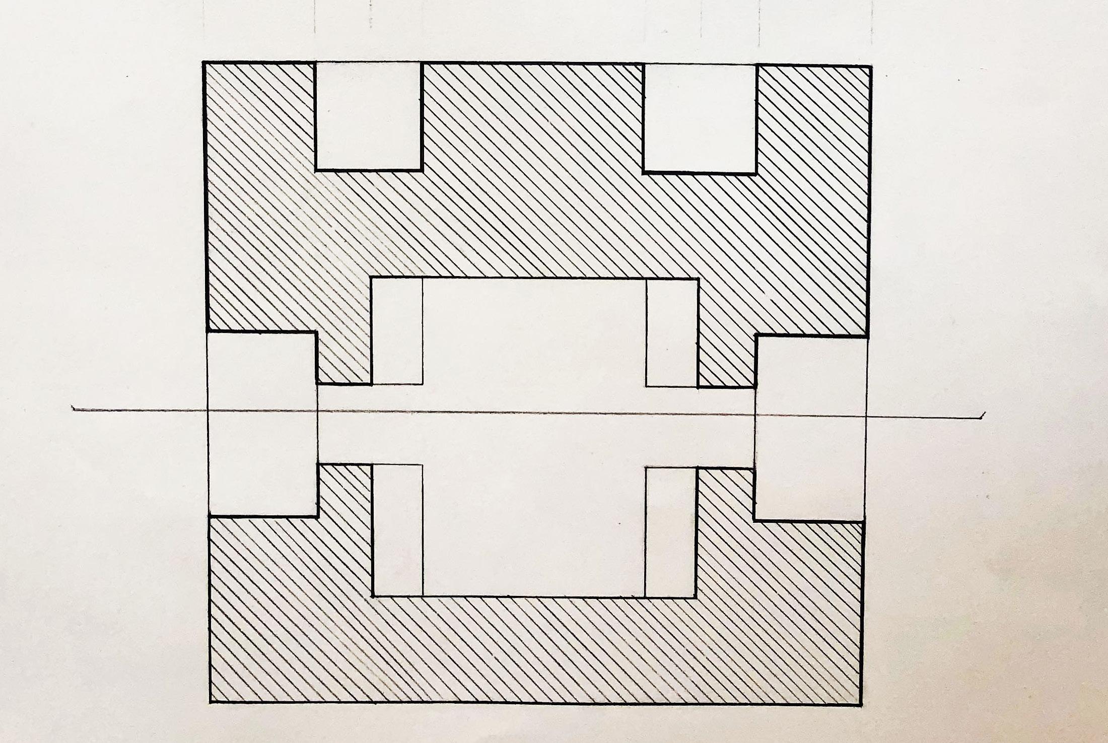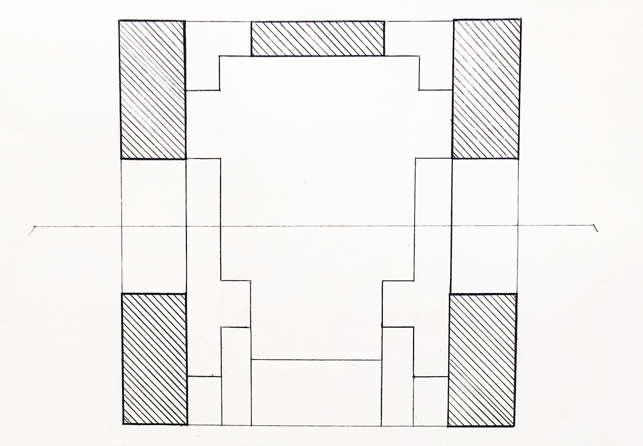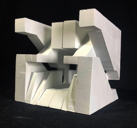 For this studio I was tasked with designing and modeling a movement. First, I recorded my movement (a push up) and then dissected and analyzed each movement it took in order to complete a single push up. Once that process was complete, I began modeling the sequence in which the push up takes place, each copper wire representing a period of time in which the body is in that position. After completing the spatial embodiment model, I moved into recreating the movements seen in a push up into a cube model. This used the angles of the movement to create ramps and spaces throughout a cube. This class focused on modelling before drawing.
