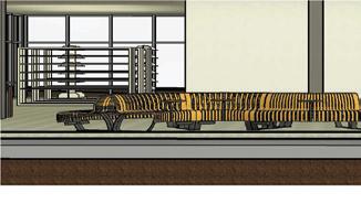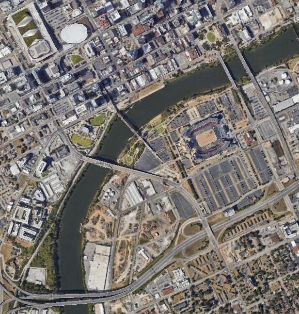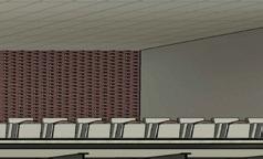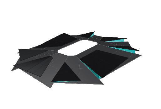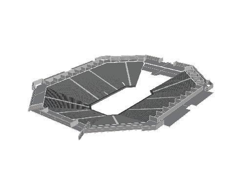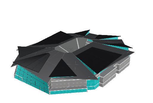 The Stadium is created from four separate “wedges” that move along a rail system, similar to how State farm stadium moves its field or the way that the Shed in NYC is expanded. This allows the Stadium to expand or contract to whatever size needed by the event. One of the two smaller wedges (purple) is used for athlete entry, workout, and locker facilities, as well as offices and mechanical needs. The other smaller wedge is the main entry for the public and connects to its downtown context (Nashville) with a large curving class curtainwall. This curve is meant to resemble the river it is located next to and connects it to its urban cityscape across the water drawing pedestrians from the popular downtown to the new developments across the river. The roof takes inspiration from Mercedes Benz Stadium in Atlanta, by using a complex shape that connects to enclose the roof, yet still letting in daylight to the main playing space. This moving structure allows a stadium to accommodate nearly every sport from the largest spatial needs of track and field to the smallest needs of tennis and volleyball, making it much more useful to a city than most of the stadiums we see today which only allow for three to four programs.