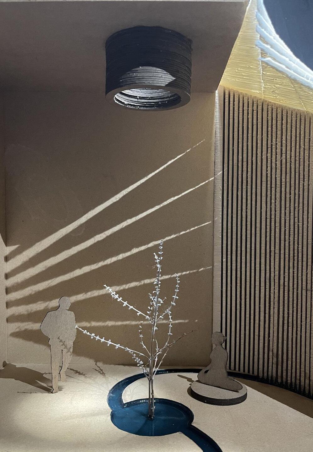 In this studio we were researching the sacred and the profane. Sacred meaning something that inspires and creates an “awe” effect and profane meaning everything else like mundane tasks and everyday struggles. The class mainly focused on the different uses of light in spiritual spaces. In this research I used MidJourney AI as well as case studies from numerous different religious and meditation spaces throughout the world to develop my ideas for what is sacred, not in a religious sense, but in a spiritual and inspirational way. I worked with a partner (Marianne Robin) on this research and final design.