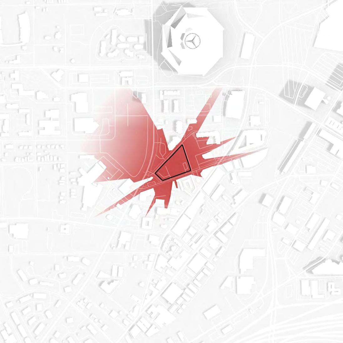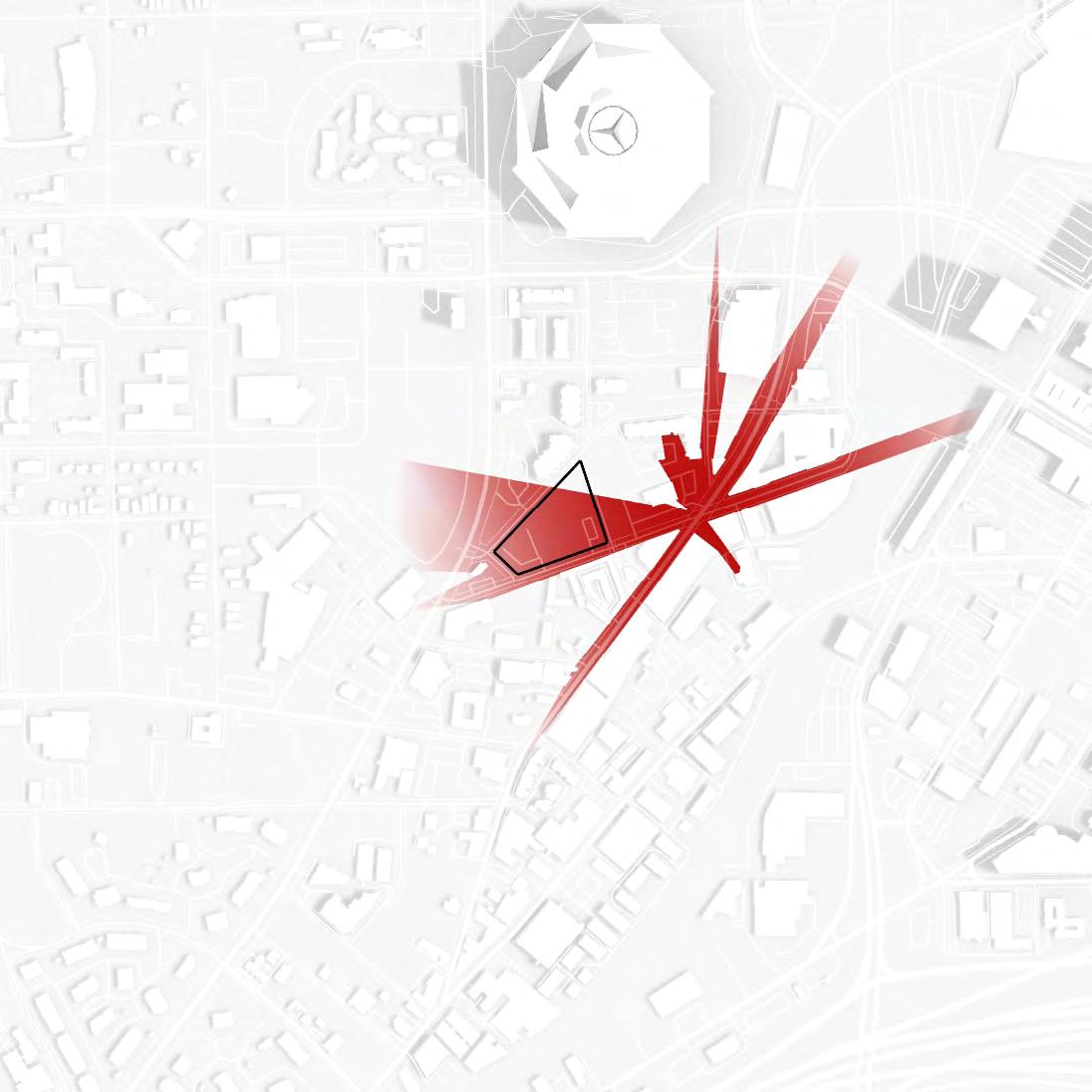 At the center of the axes, the membrane takes form around local elements and responds to urban context.
