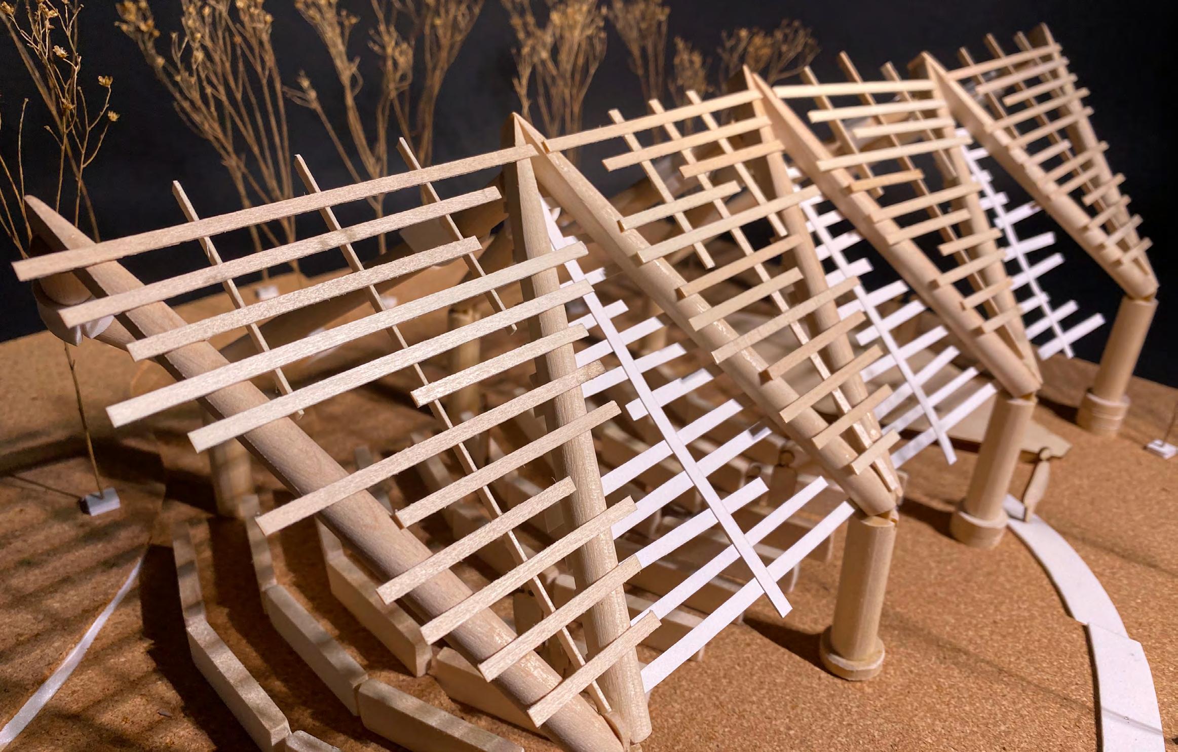 Our task was to design a shade structure that did not shed water, but still invited a host of events, such as weddings, outdoor classes, day camps, and more. The second limitation to this project was a very narrow budget. This limitation turned out to be incredibly helpful in learning how to branch out and acquire lowcost materials, as well as creating meaningful networking connections with industry professionals.