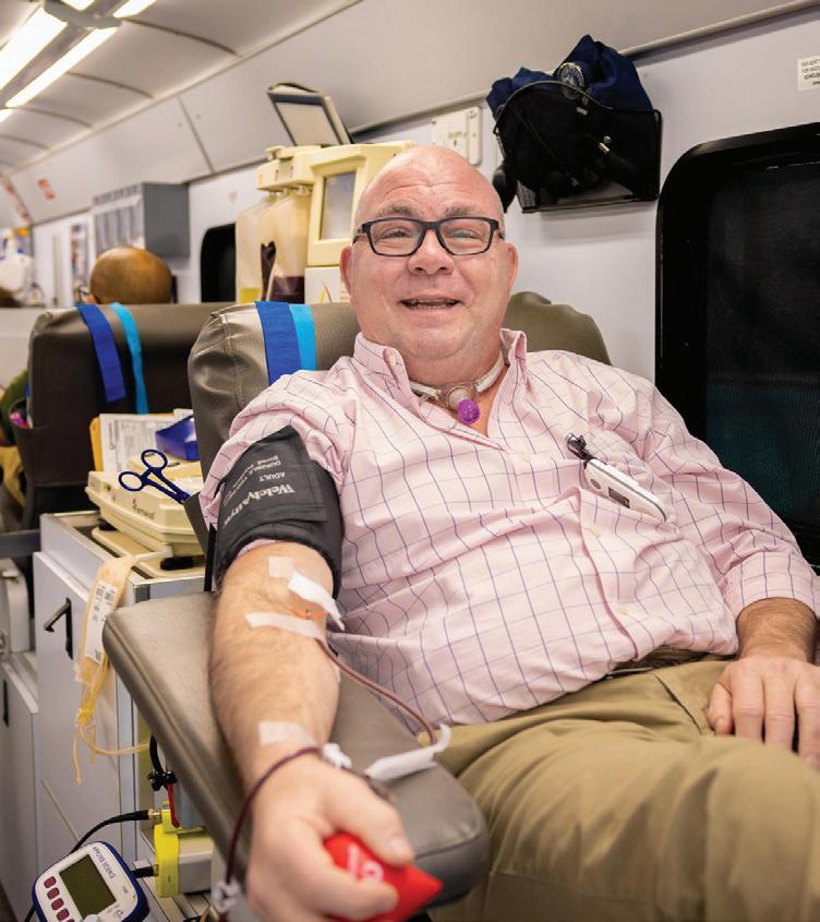 • He schedules his platelet donations months in advance, ensuring he is in the OneBlood donor chair every two weeks