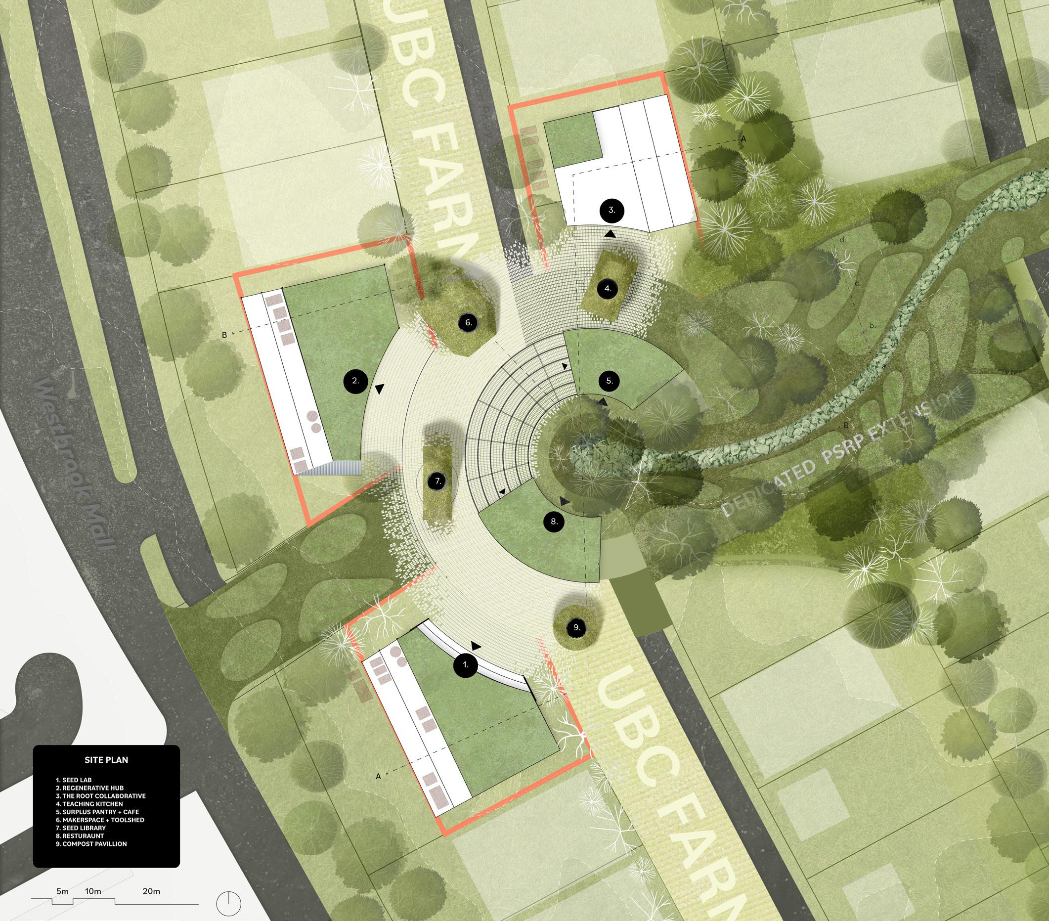 to introduce policy and rezoning that can start to orient people to make the connection between food and the environment, as the UBC FARM explains “Food is the most intimate way we consciously interact with the environment.” We takled growing system tackles densification by shaping FSR through habitat density and community farming initatives and needs. Our proposed hub embodies the core of our imagined framework; balancing the need for growth with ecological resiliance and acess to good food.