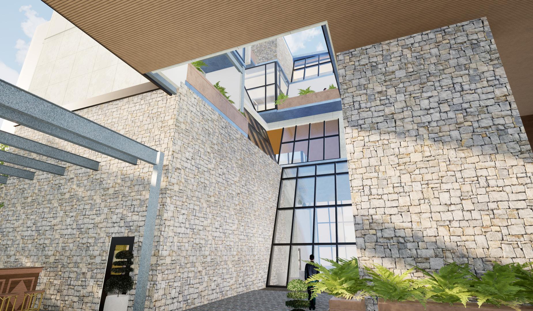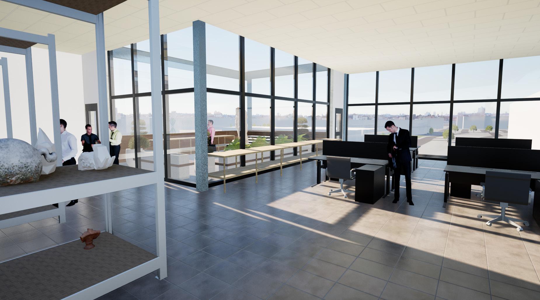 At the heart of the building lies a central void, a defining architectural element that unifies each floor and fosters a continuous sense of connection throughout the project. This void, accentuated by transparent materials and carefully crafted viewpoints, encourages visual interaction across different levels and program areas. Visitors and occupants can view and experience the activities occurring within the microbrewery, glass-blowing studio, manufacturing area, and business incubator from multiple perspectives. This intervisibility promotes cross-disciplinary appreciation and strengthens the relationships between each program.