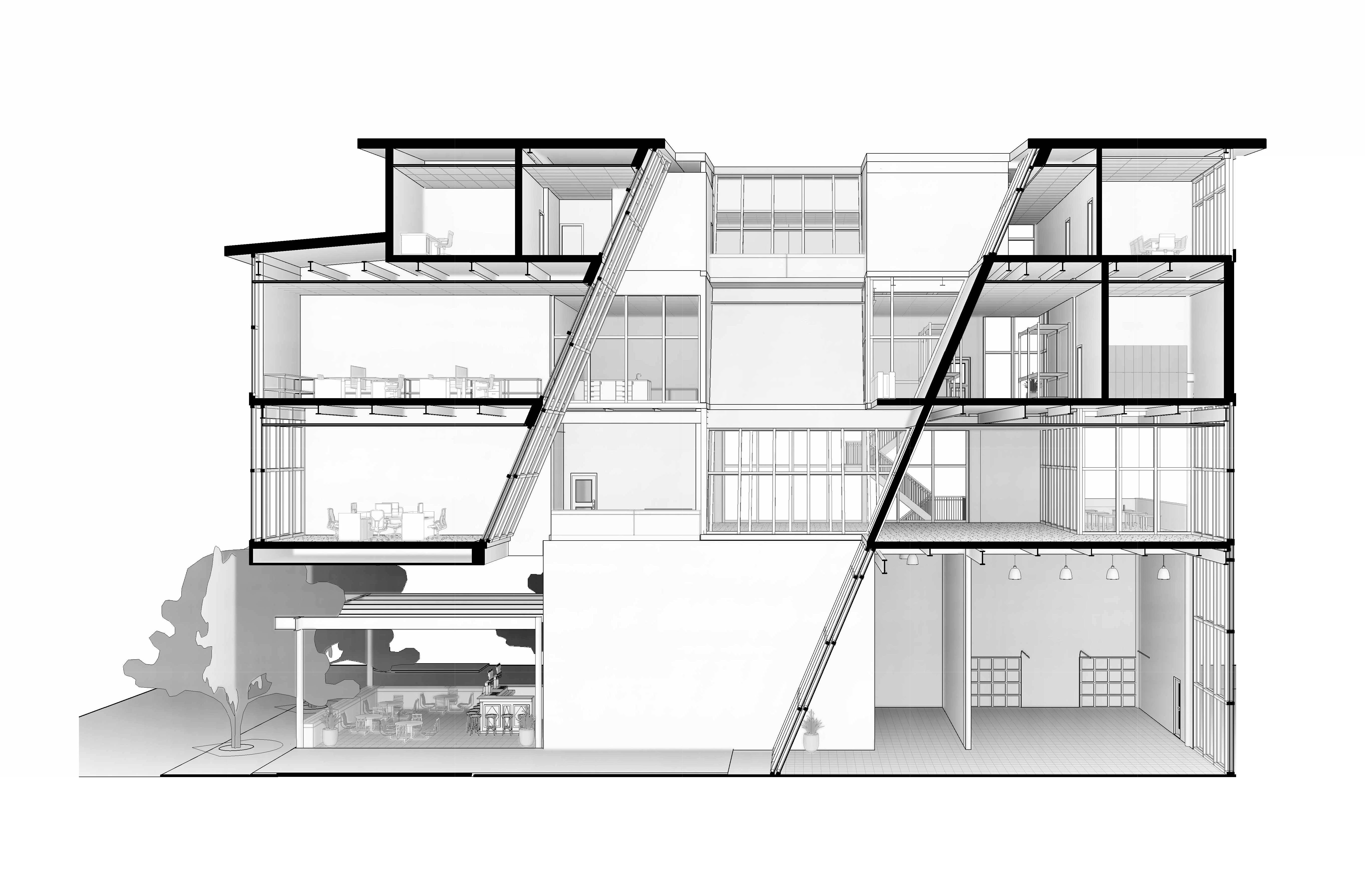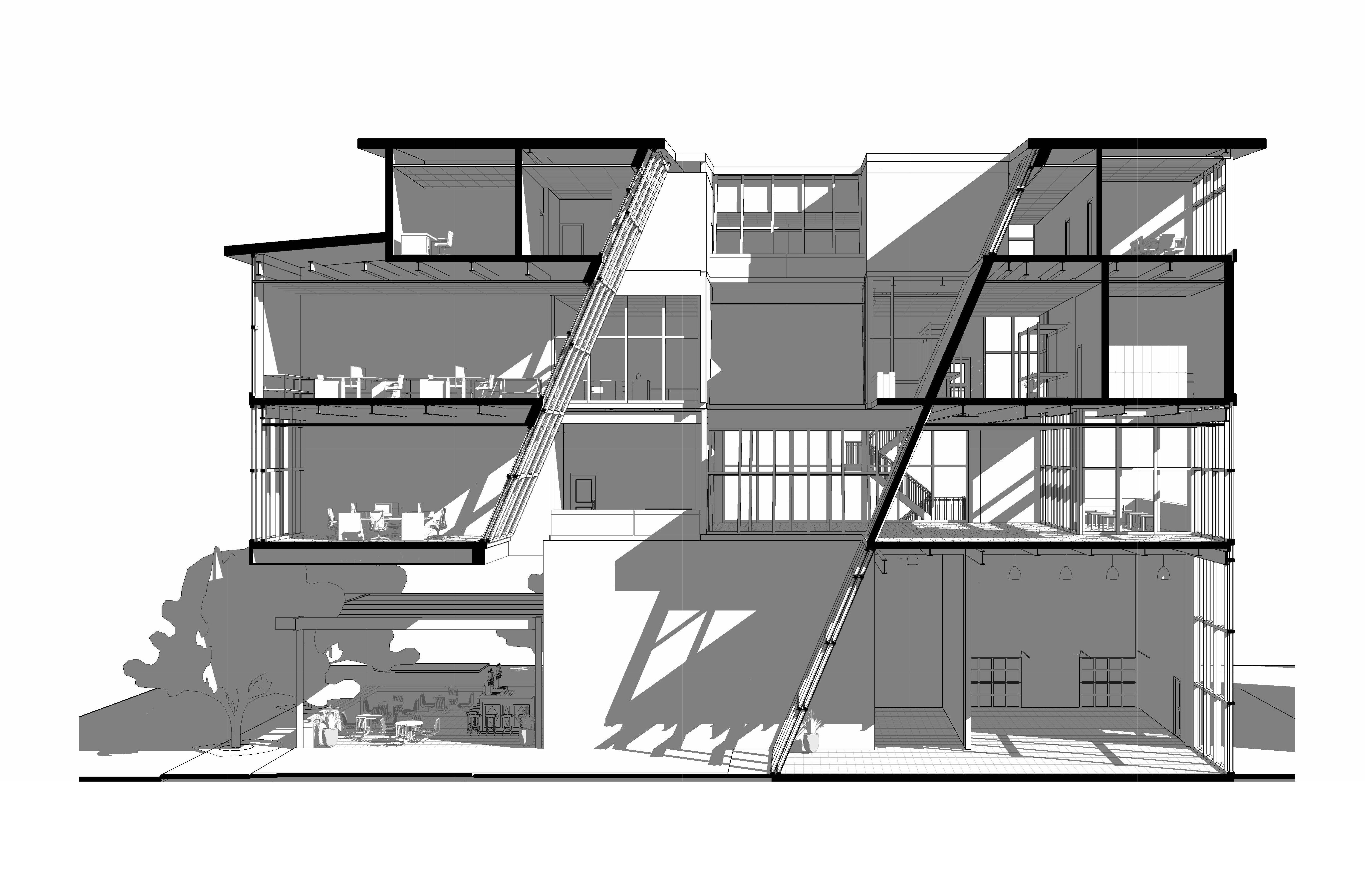First was the lack of space for classrooms, exhibition, and lecture space available in the school. This was solved through enclosing the courtyard and creating a staggering floor system to create a central space that contained classroom, lecture halls, exhibition, and seating.