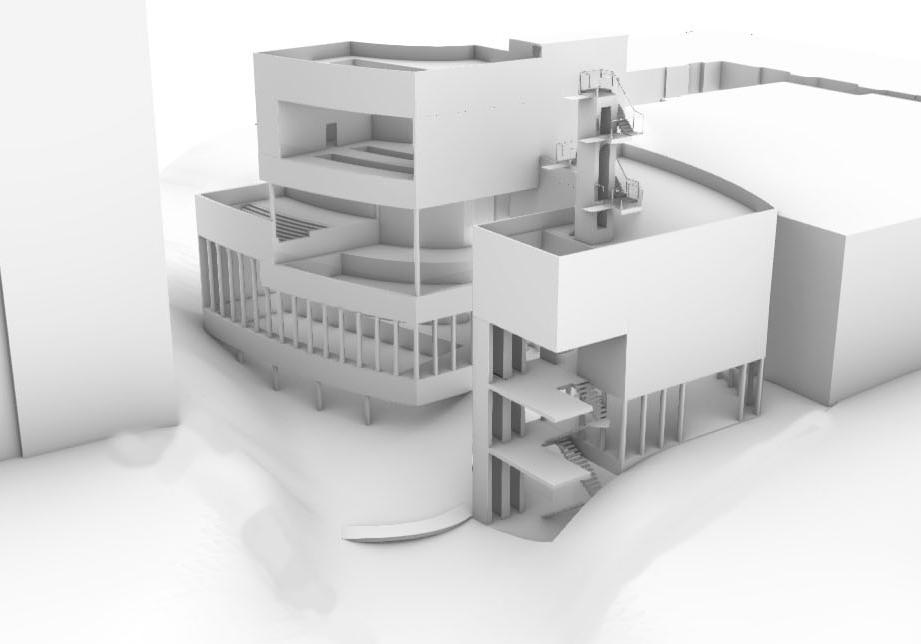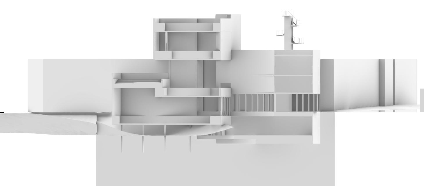 This project was based on a grid dervied from my precedent study, Hearst Castle. The grid was created from the neptune pool where then introduced a concept of shifting and breaking pieces of the grid to create my volumes. From there with the introduction of the program and context I delevoped and solidified the form.