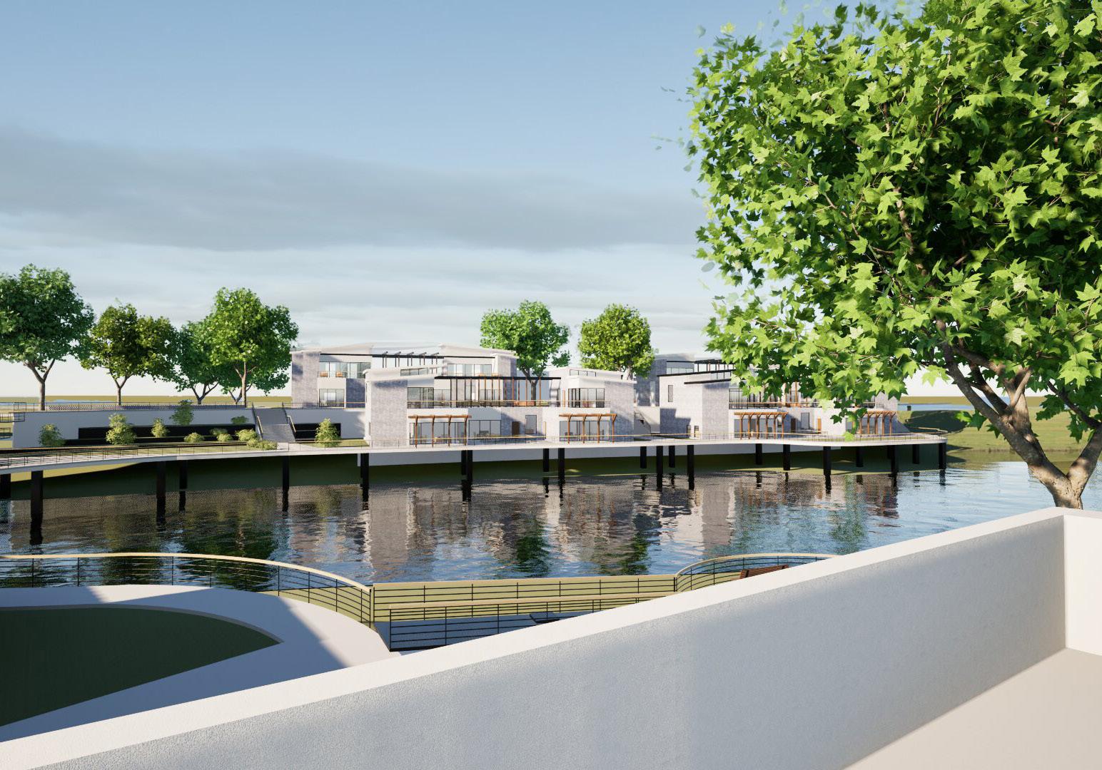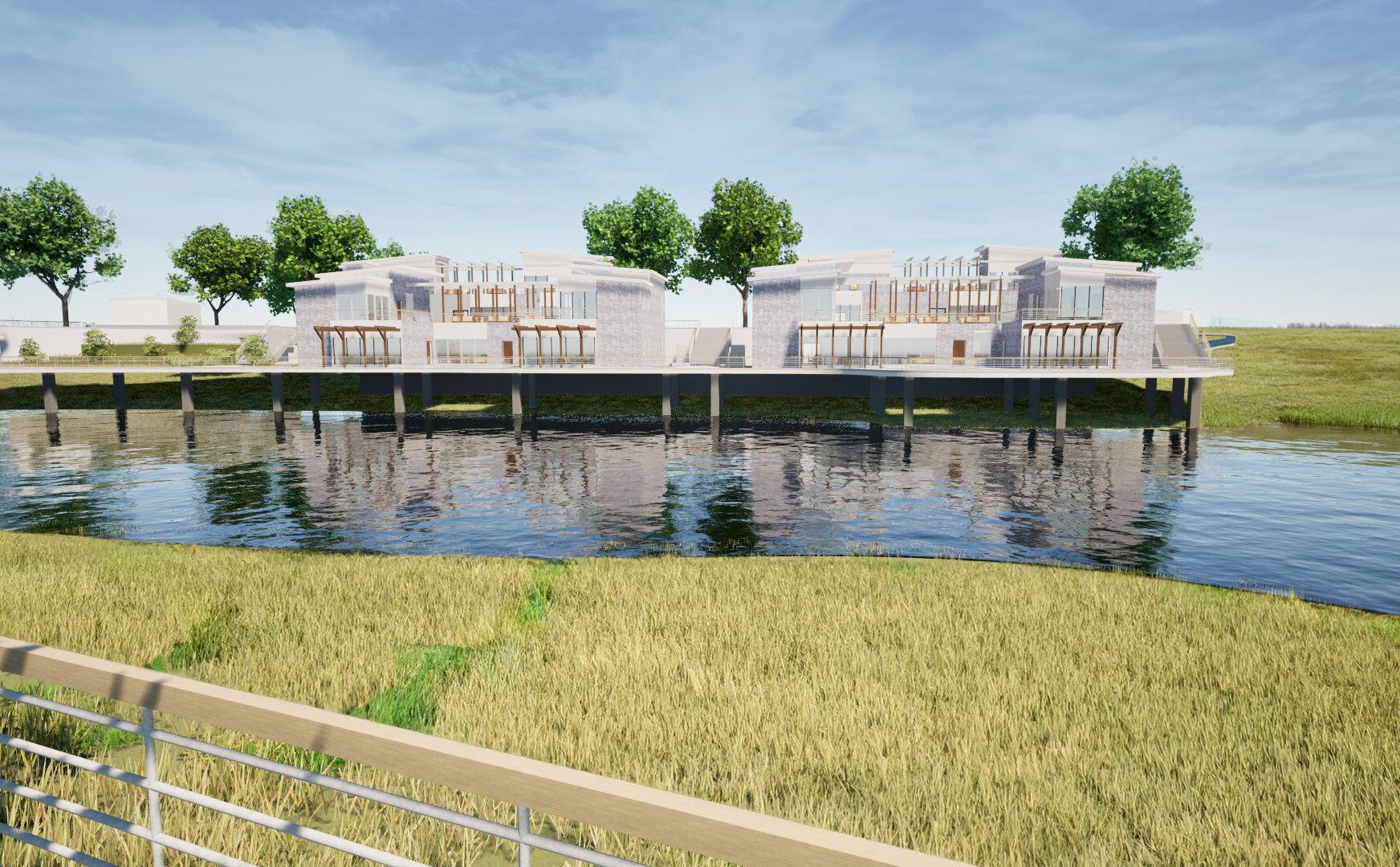 The tectonic approach in the project is a combination of a system of columns and bearing walls. The South side that faces the creek will mostly be open air and supported with columns, while the North side that faces the neighboring building is bearing walls and will be closed off.