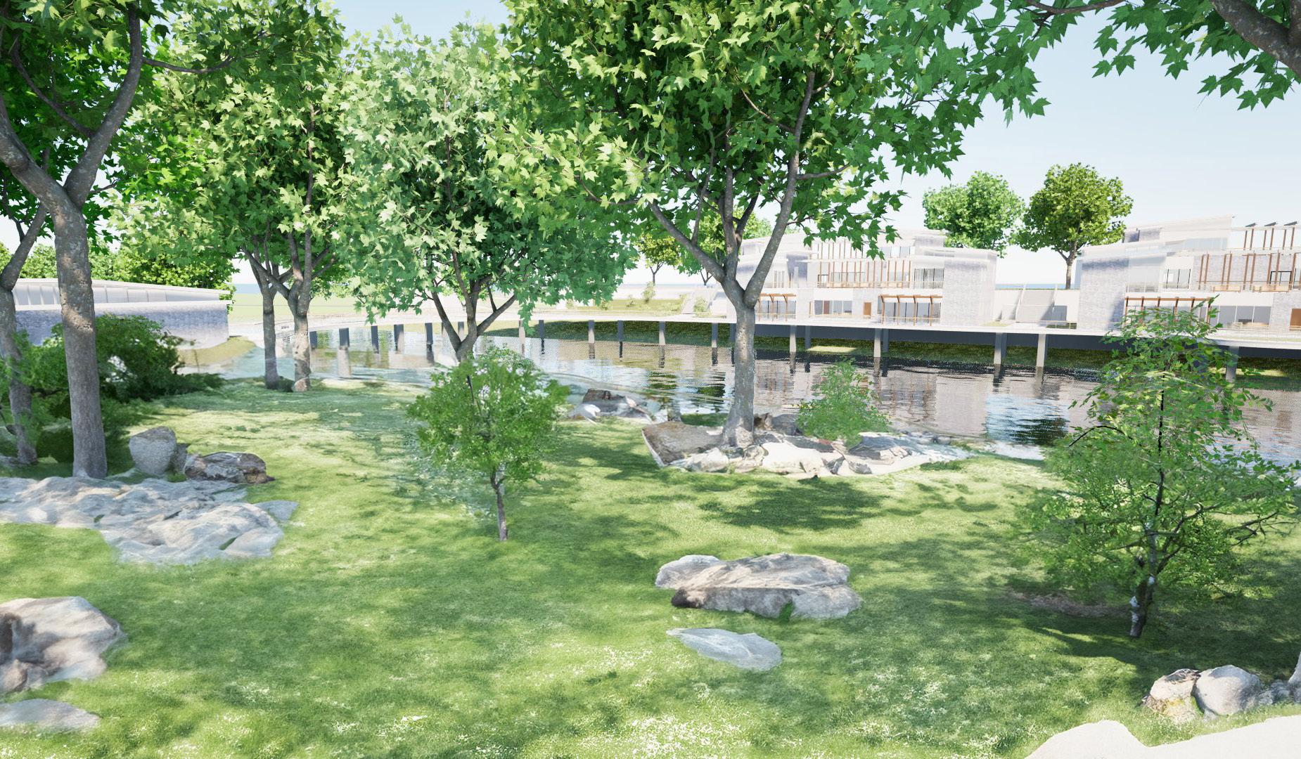This project is complex for kids who age out of the foster care system and was created to provide them with a stable environment as they transition into adulthood. The central portion of the complex is the housing, which is designed to provide these young adults with their own space to develop and learn who they are without sacrificing individuality and basic comforts such as a personal living space. However, the goal is not to isolate them but to encourage social interaction. Many units are two-bedroom designs with shared common spaces such as a kitchen and living room that will encourage the building of social skills. Other units that are one bedroom are attached to other units only externally and share an exterior common space such as a patio or rooftop terrace. The buildings themselves are staggered to provide an undisrupted view of the lake in the middle of the complex. The overall flow of the site is based on the creek and lake at the center to disrupt the environment as lightly as possible. The south side will contain other structures, such as a community center where kids can learn and gain valuable skills — a store where they can work, and an amphitheater to encourage community interaction and creativity. Through public and free concerts provided to the residents and surrounding community. There are also classrooms designed to allow residents to take lessons from musicians as a sort of music therapy.