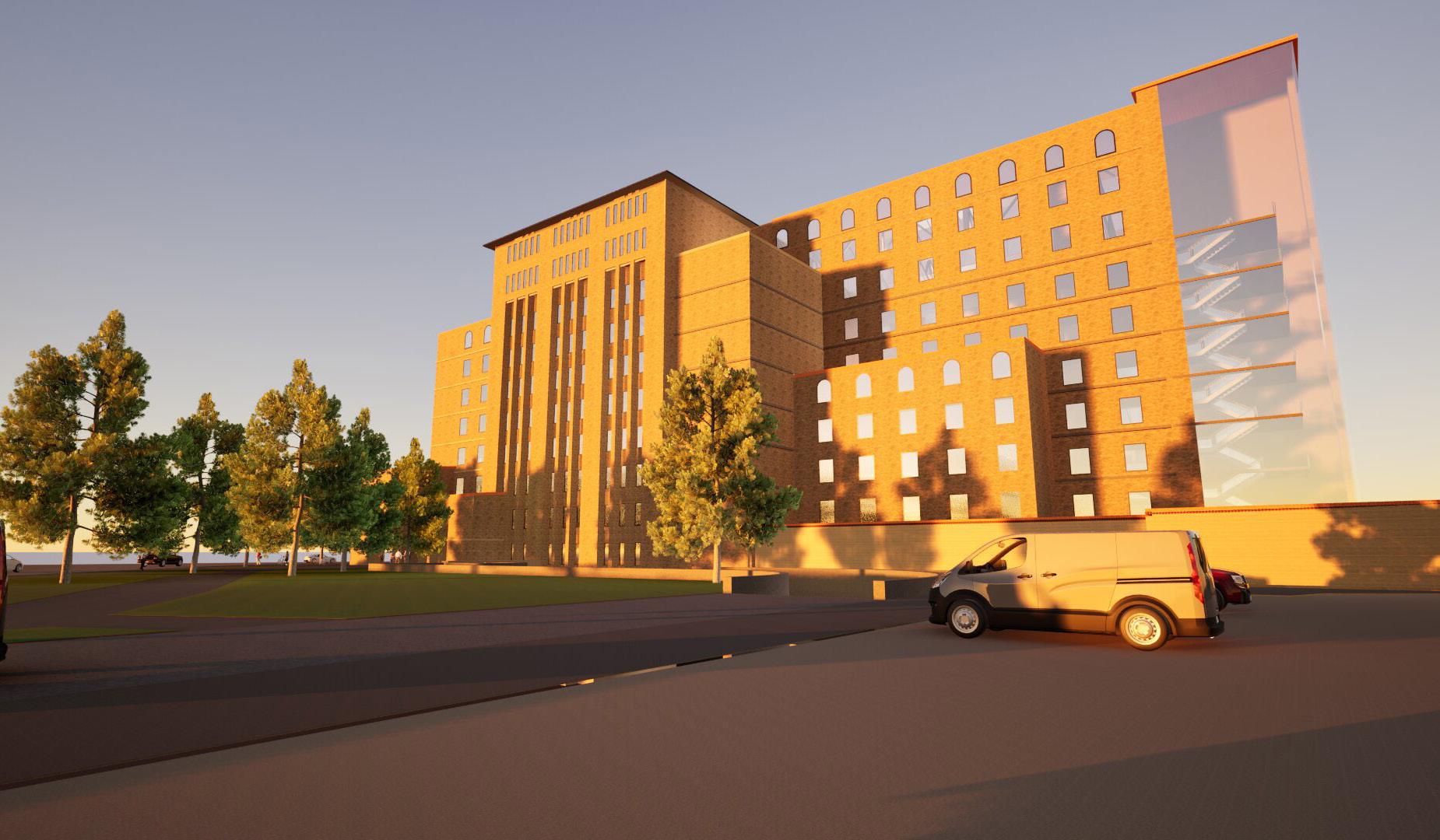 Third, was the overall perception of the school from the exterior view. The building is large and monolithic so through embracing it the building has been refined around the masses that have been added to the south and north ends of the building that have been carefully designed around the portions of the original building and work off of each to balance out in elevation.
