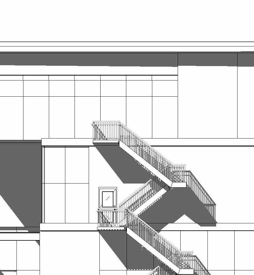 Second was the horizontal and vertical circulation in the school. The horizontal and vertical circulation was expanded through the addition of the enclosed courtyard as it added more paths and stairwells around the space that tie back into the original building.