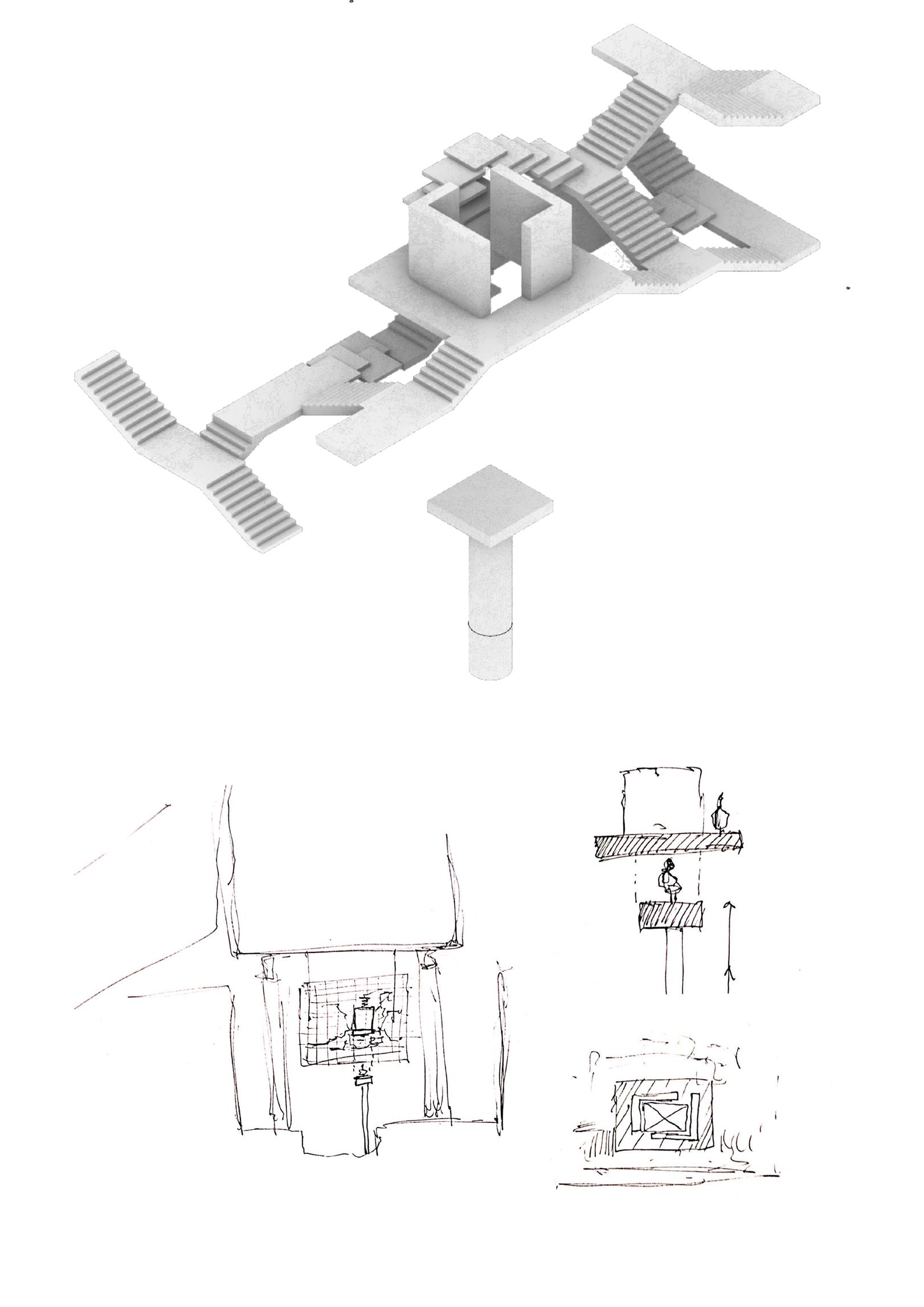 Limbo focuses on the journey and the experience rather than the structure. It is a classic ‘form over function’. Inspired by ‘Dante’s Inferno’ and of his journey through the first circle, from souls, who for eternity resided in this unknown realm, portraying it as a place in which leave is hopeless and all want of comfort is never given. This inspired an image of a maze of leading to the eventual development of stairs, something no one in life desires of seeks comfort