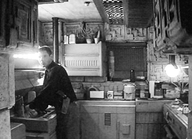which they were done. Shown in figure 13 is the proposed images by Syd Mead, an artist based out of Michigan USA, his designs had a modern futurist element to them due to the use of curves, dynamic lines and colour (Syd Mead, 2022). Mead’s detail and dedication to the style allowed for Scott to directly develop from sketch to physical model or set, examples can be seen in Deckard’s Kitchen and The Spinner vehicle as seen in the comparative figure 14. Not only then, did Scott use the advantageous technologies but also the modern artistic abilities of his peers to generate mocklife renders of his vision allowing for a more enriched Sci-Fi film. Even though Scott had access to greater technologies to that of Lang, he also adapted the uses of scaled models to create the larger cityscape scenes along with the flying automobiles. In a very similar way to Lang Scott created the city reimagining through large models (Figure 14) in doing this it is clear to see that while the technological advancements in colour film, minor digital animation and artistic rendering are prevalent it has not been further developed to the point of constructing large city scaled sets using