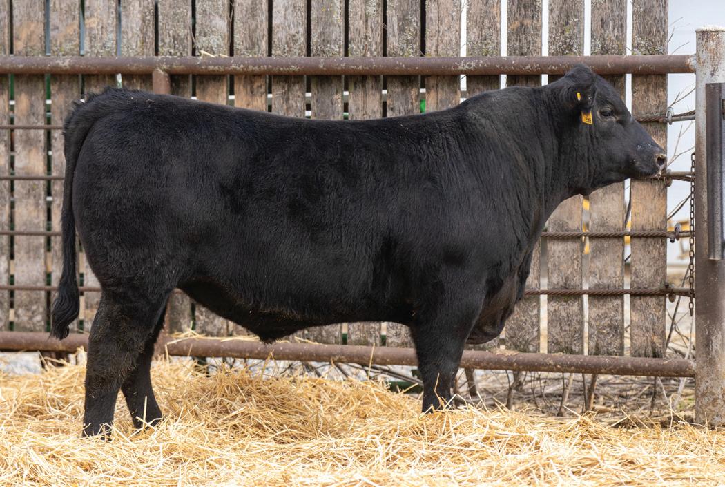 We are anxious for you to see and evaluate the cattle in this sale. Never have we seen so many bulls with such exceptional gain. Their weights represent an intersection of genetic potential and fine-tuned nutrition. They were creep fed a ration of ½ soy hull pellets, ¼ corn gluten, and ¼ corn with a vitamin premix. The post weaning diet consisted of corn silage and a maximum of 13 pounds concentrate. Since late February the diet has been limited silage, hay and straw processed through a TMR mixer.