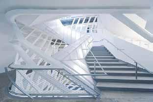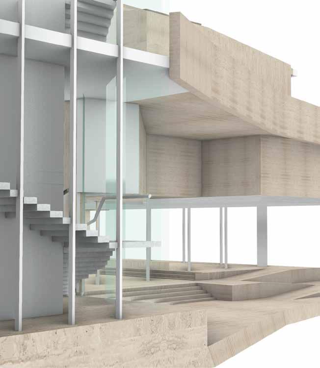 A winding stair wraps around the elevator, operating as primary circulation between oors while allowing view of the creek, outdoor seating, and neighboring structures.