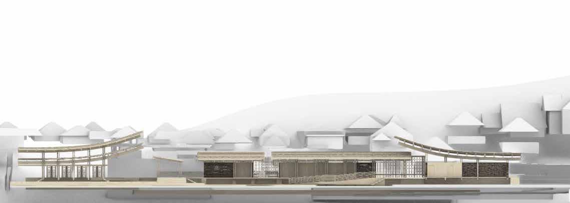 The clinic fascilitates a harmonious relationship between the contemporary needs of a wellness center and the architectural character of Tenganan. The Sanga Mandala, an organizng principle that divides a space into 9 parts as well as the Balinese belief in the tripartite universal order are cultural elements that are then recontextualized to organize the building as activities of entry, core, and public zones. These elements emphasize a connection to nature, using a gestural roof analogous to the surrounding landscape, while maintaining the architectural characteristics of the Tenganan village through a contemporary lens.