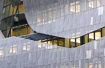 Entrance vestibule operates as an intimate transition space from the street to the double height space of the entrance lobby.
