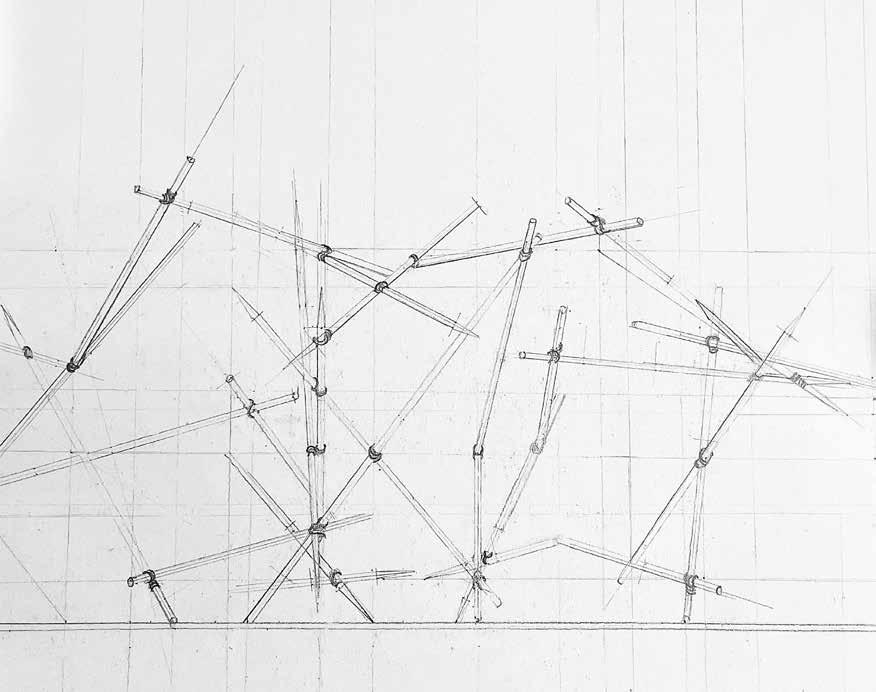 TTU CoA_MEDIA ELECTIVE: SPATIAL DYNAMICS 22 Matthew Pena Prefabricated Joint Connection Components Component A Component B Component C Matthew Pena TTU CoA Spring 2022 | ARCH 4341: Spatial Dynamics INSTRUCTOR: Buie Exploded Axonometric Stabilizing Component for primary structure Notch connection for secondary structure Matthew Pena TTU CoA Spring 2022 ARCH 4341: Spatial Dynamics INSTRUCTOR: Buie Seed Spatial Modulation Sequence Intersecting notch secondary structure Initial Ground Mass Intersecting primary structure embedded into ground plane Exploded Axonometric View Model Elevation Drawing 18”x24” Graphite on Paper Model Elevation Drawing Hatchwork 18”x24” Graphite on Paper Initial Spatial Model Side Elevation Initial Spatial Model Front Elevation Extracted System Seed Model Wood on MDF Seed Spatial Modulation Sequence