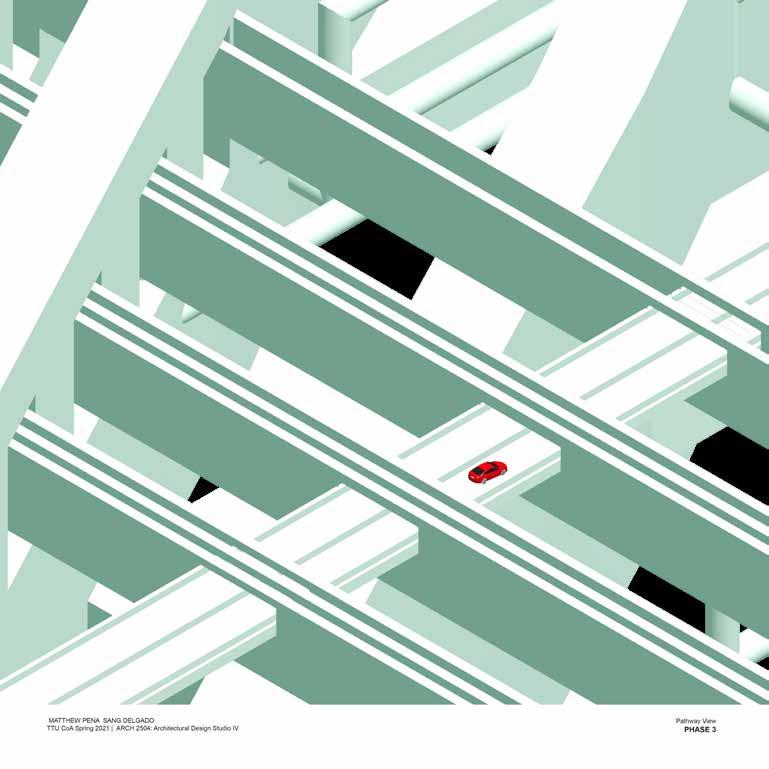 15 Matthew Pena UP UP MATTHEW PENA SANG DELGADO TTU CoA Spring 2021 ARCH 2504: Architectural Design Studio IV Volumetric Isometric PHASE 3 Stage Threshold Plan+Section Circulation Isometric Volumetric Isometric