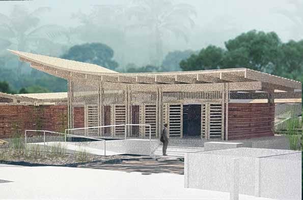 26 Matthew Pena Waterproof Membrane Timber Ra�er Glulaminated Beam Bamboo Clerestory Rammed Earth Wall Double Glazed Window Timber Cross Member Wood Decking Concrete Founda�on Bamboo Shingle La�ce Frame Bamboo Shingle Timber Rafter Glulaminated Beam Bamboo Clerestory Bifold Door Conrete Foundation Bamboo Column Lattice Frame Waterproof Membrane Timber Joist Rammed Earth Wall Wood Decking 48” 48” 18” MIN. 2’-0” 3’-0” CLR. 3’-0” 48” 10” West Sec�on A-A Scale: 1’= 1/8” South Sec�on B-B Scale: 1’=1/8” Detail Sec�on Scale: 1’= 1/4” ADA Typical Restroom Scale: 1’= 1/4” Exploded Axonometric Detail Section South Section B-B West Section A-A ADA Restroom Configuration Exploded Axonometric