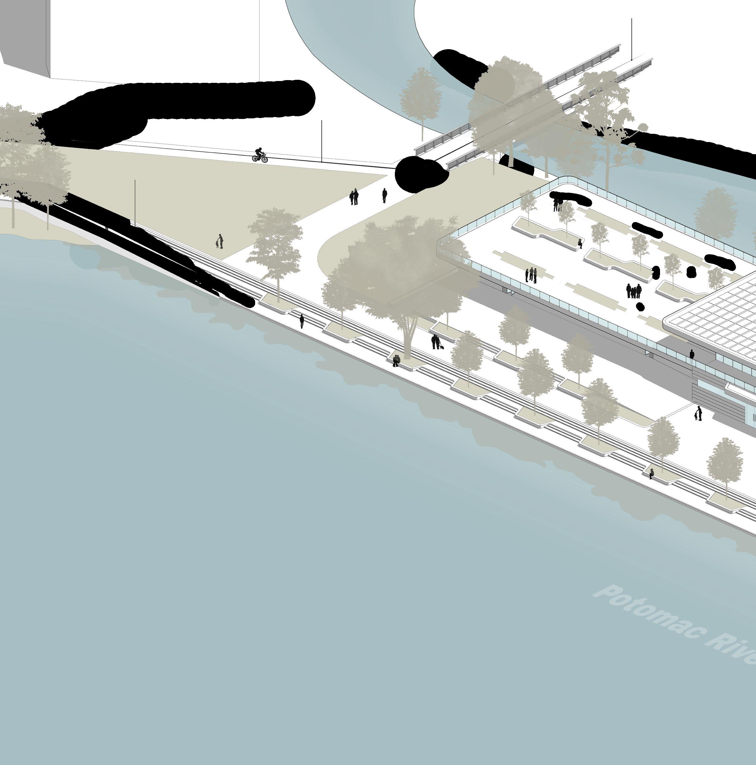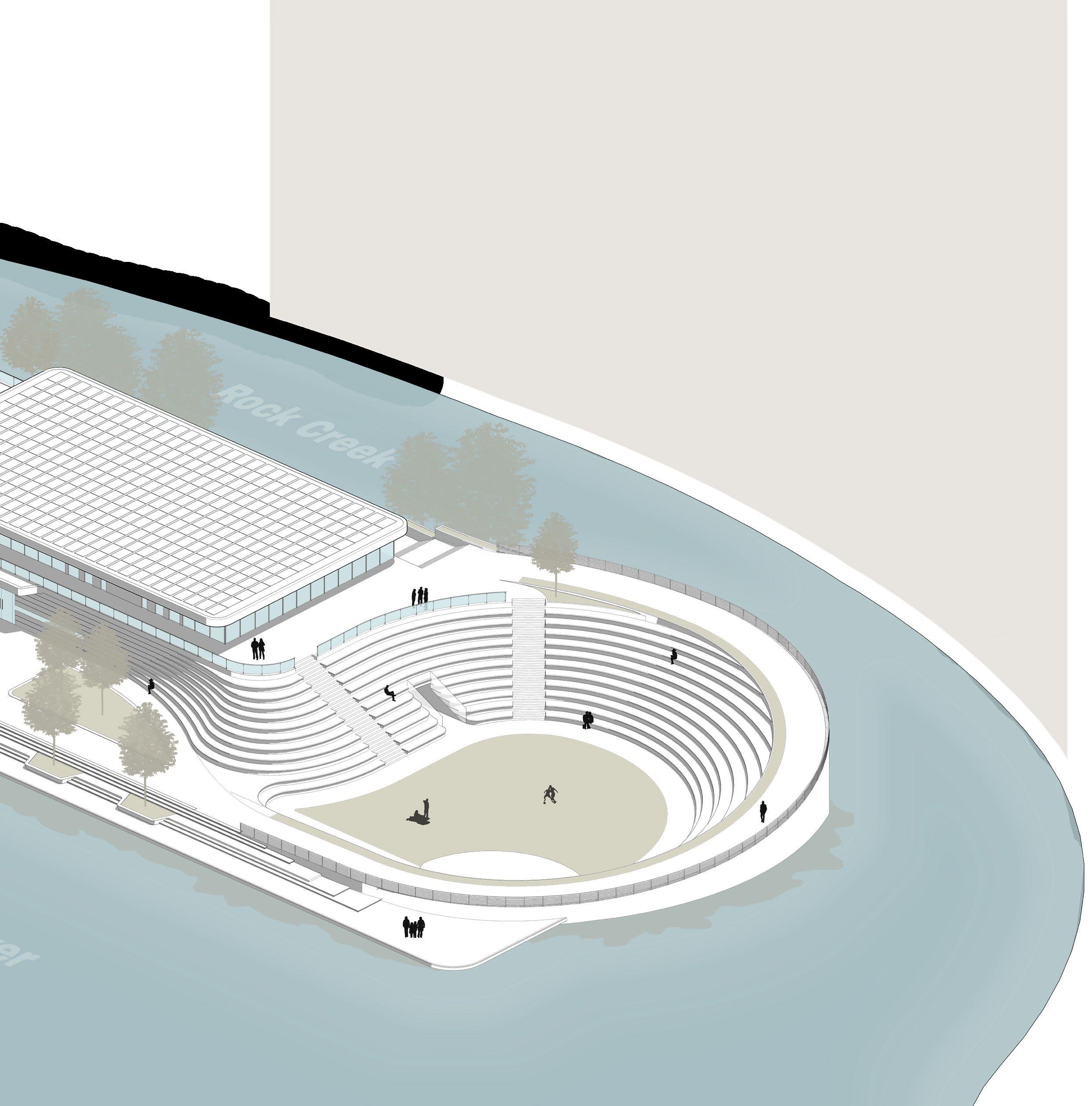 Riverside Oasis is a contemporary reinterpretation of the ancient Greek amphitheater, carved into the undulating topography of the Potomac Riverbank. Designed to blend seamlessly into its natural surroundings, the project offers sweeping views of the Kennedy Center, Memorial Bridge, Roosevelt Island, and the Arlington skyline. More than just a performance venue, it aims to serve as a vibrant community gathering space and cultural destination. The amphitheater strengthens the connection between art, nature, and the city, transforming the riverfront into an immersive public landscape. With a focus on ecological integration, Riverside Oasis not only enhances the existing pedestrian network of the Georgetown waterfront but also fosters a dialogue between performance and environment. It envisions a new kind of public space—one that embraces natural processes, promotes cultural exchange, and elevates the sensory experience of the river. The result is a civic landmark rooted in both ecological stewardship and artistic expression.