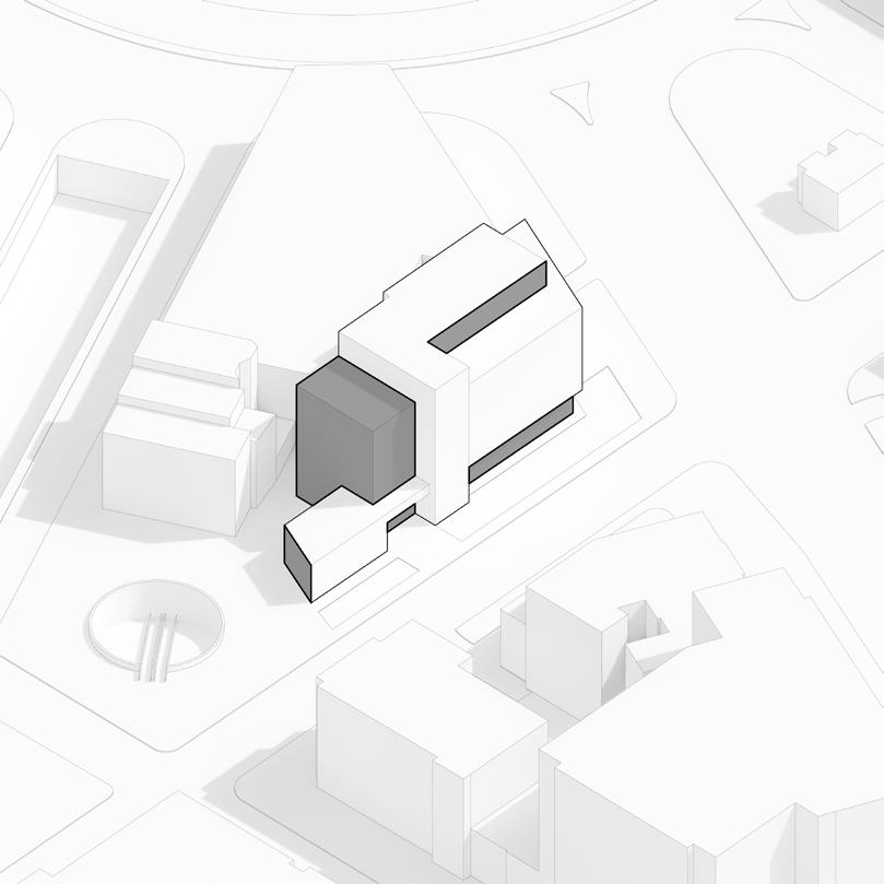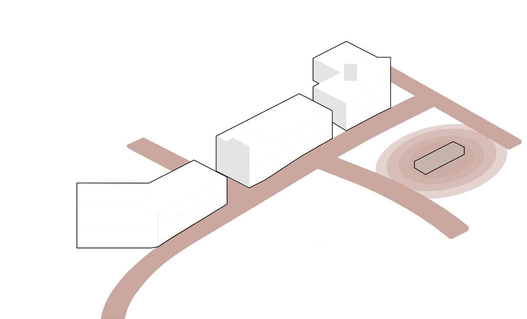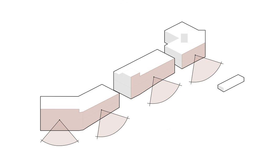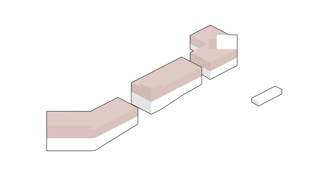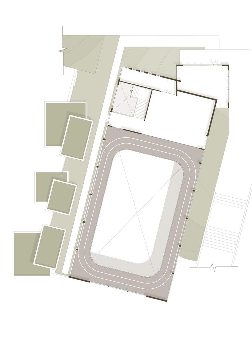 The buildings were further divided using a secondary grid, subtly offset from the city’s existing layout. This intervention creates a cohesive link between the center and its residential surroundings. The resulting smaller volumes house key amenities—such as the gym and pool—while reinforcing the facility’s primary functions and integrating seamlessly into the broader urban fabric.