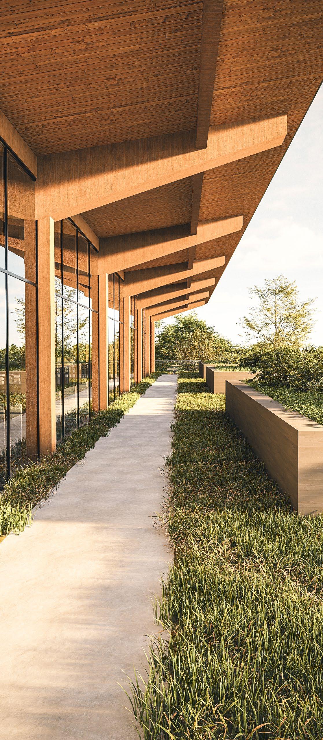ecological resilience and site aesthetics. These species, welladapted to the local environment, collectively generate approximately 6,000 pounds of oxygen annually while sequestering 2,000 pounds of carbon. This integration of native vegetation supports biodiversity, improves air quality, and reinforces the project’s broader commitment to sustainable design.