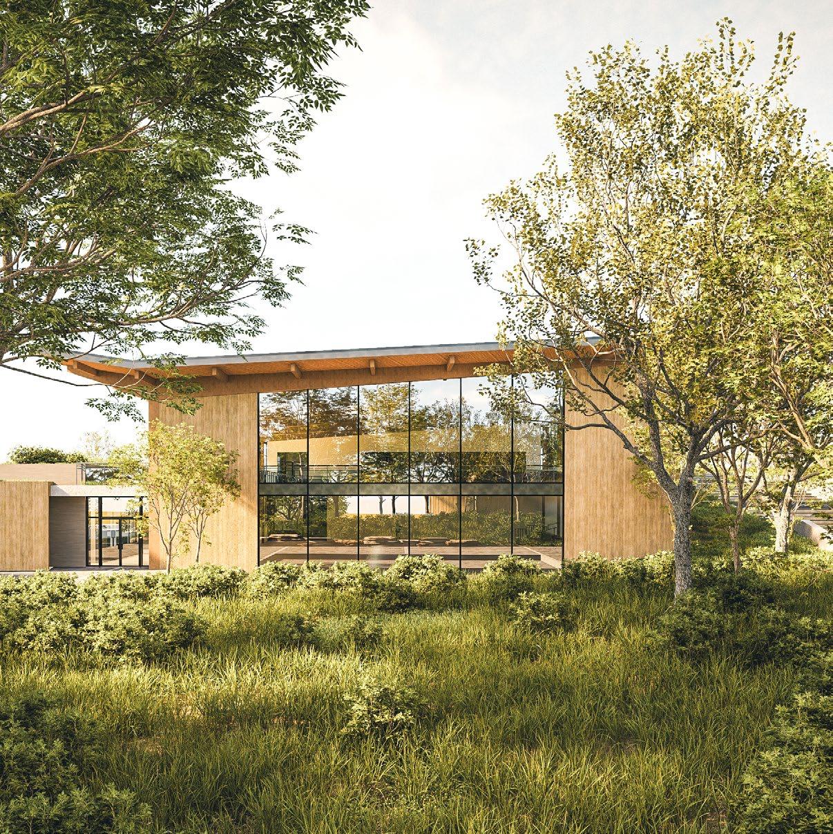 The landscape design introduces 25 native trees—including white oak, red maple, and river birch— strategically placed to enhance