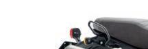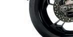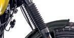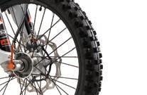 ENKELE 240 MM SCHIJF MET EENZUIGERREMKLAUW, VOORVERING: SHOWA 43 MM UPSD, VOLLEDIG REGELBAAR, VEERWEG 120 MM, ACHTERVERING: STALEN DUBBELZIJDIGE ACHTERBRUG, VOLLEDIG