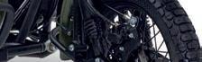 VOOR: HYDRAULISCH BEDIENDE ENKELE 260 | 300 MM SCHIJF MET TWEEZUIGERREMKLAUW, REMMEN ACHTER: HYDRAULISCH BEDIENDE ENKELE 220 MM SCHIJF MET EENZUIGERREMKLAUW, VOORVERING: PAIOLI 41 MM UPSD, NIET REGELBAAR, VEERWEG 240 MM, ACHTERVERING: STALEN DUBBELZIJDIGE ACHTERBRUG, NIET REGELBARE MONOSHOCK, VEERWEG 210 MM, VOORBAND: 90/90-21 | 100/80-17, ACHTERBAND: 120/80-18 | 130/70-17, WIELBASIS: 1.430 | 1.425 MM, NALOOP: N.B., BALH.HOEK: N.B., ZITHOOGTE: 905 | 880 MM, GEWICHT: 134 KG, TANKINHOUD: 7,5 L, PRIJS: B: N.N.B. - NL: N.N.B.