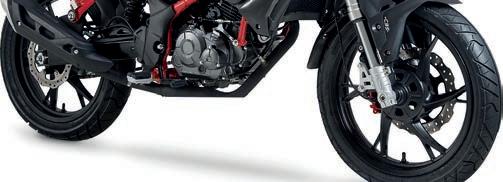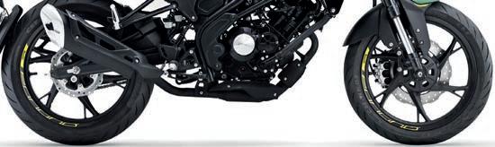 MOTOR: LUCHT/OLIEGEKOELDE EENCILINDER, VIERTAKT, 4 KLEPPEN/ CILINDER, INJECTIE, BORING X SLAG: 54 X 54,5 MM, CIL.INH: 124,8 CC, VERMOGEN: 8,2 KW - 11,1 PK/9.500 OPM, KOPPEL: 10 NM/ 7.000 OPM, TRANSMISSIE: KETTING, VERSNELLINGEN: VIJFBAK, REMMEN VOOR: HYDRAULISCH BEDIENDE ENKELE 260 MM SCHIJF, REMMEN ACHTER: HYDRAULISCH BEDIENDE ENKELE 240 MM SCHIJF MET EENZUIGERREMKLAUW, VOORVERING: 35 MM UPSD, NIET REGELBAAR, VEERWEG 110,5 MM, ACHTERVERING: STALEN DUBBELZIJDIGE ACHTERBRUG, NIET REGELBARE MONOSHOCK, VEERWEG 40 MM, VOORBAND: 110/80-17, ACHTERBAND: 130/70-17, WIELBASIS: 1.360 MM, NALOOP: N.B., BALH.HOEK: N.B., ZITHOOGTE: 780 MM, GEWICHT: 142 KG, TANKINHOUD: 13,5 L, PRIJS: B: € 3.199,00NL: € 3.399,00 54 X 54,5 MM, CIL.INH: 124,8 CC, VERMOGEN: 8,2 KW - 11,1 PK/9.500 OPM, KOPPEL: 10 NM/7.000 OPM, TRANSMISSIE: KETTING, VERSNELLINGEN: VIJFBAK, REMMEN