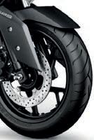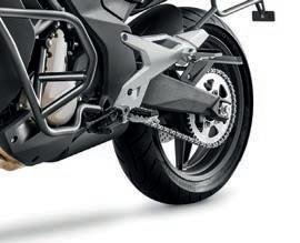 REGELBARE SHOWA MONOSHOCK, VEERWEG 140 MM, VOORBAND: 120/70-17, ACHTERBAND: 180/55-17, WIELBASIS: 1.450 MM, NALOOP: 94 MM, BALH.HOEK: 24,5°, ZITHOOGTE: 787 MM, GEWICHT: 235 KG, TANKINHOUD: 180 KM (GECOMBINEERD), PRIJS: B: € 21.900,00NL: € 21.900,00 TANKINHOUD: NL:
