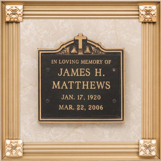 With many designs to choose from, Matthews’ niche plates allow for a permanent tribute with a uniform appearance on marble, granite or other closed niche fronts. Additional designs available.