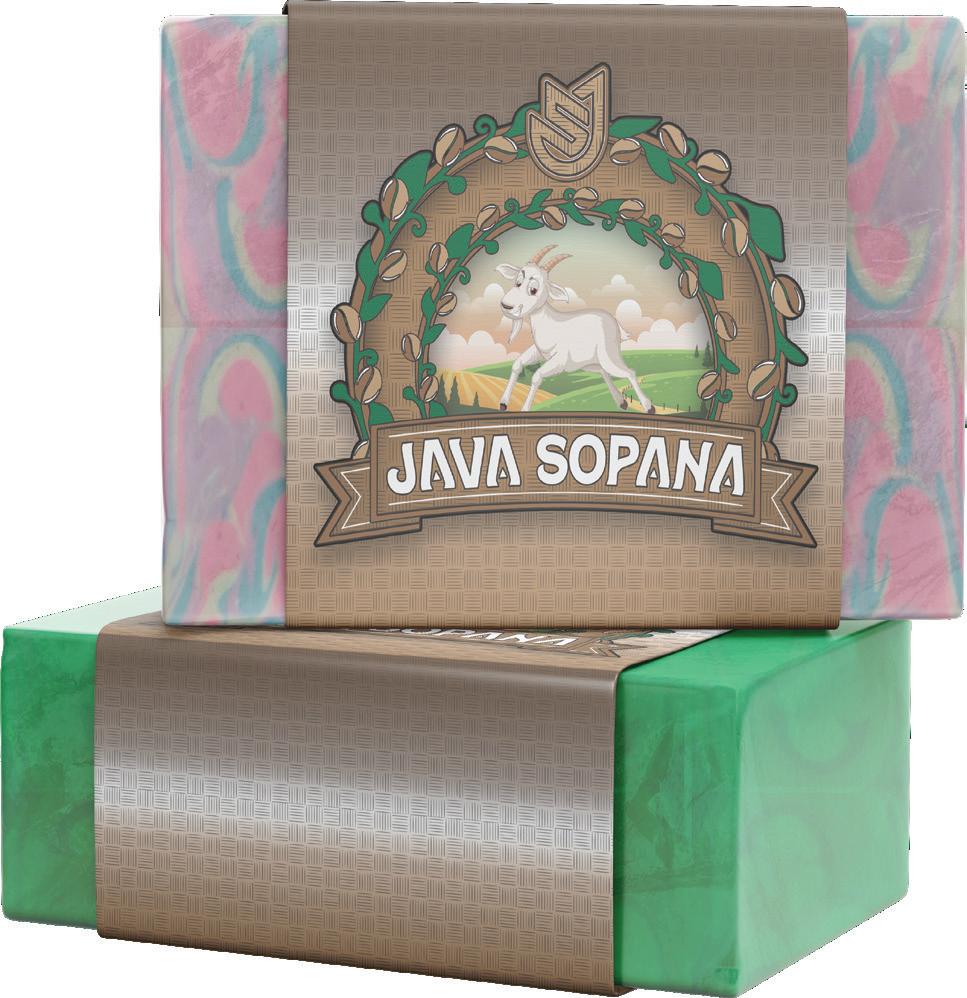 Hand-poured from pure goat milk, Java Sopana is an innovative dual function bath soap. Co ee grinds are used in the preparation of one half for exfoliation purposes, while the other half is poured with all natural ingredients to promote smooth healthy skin. Packaging and logo were designed to promote the finished product in an eye-catching and memorable way.