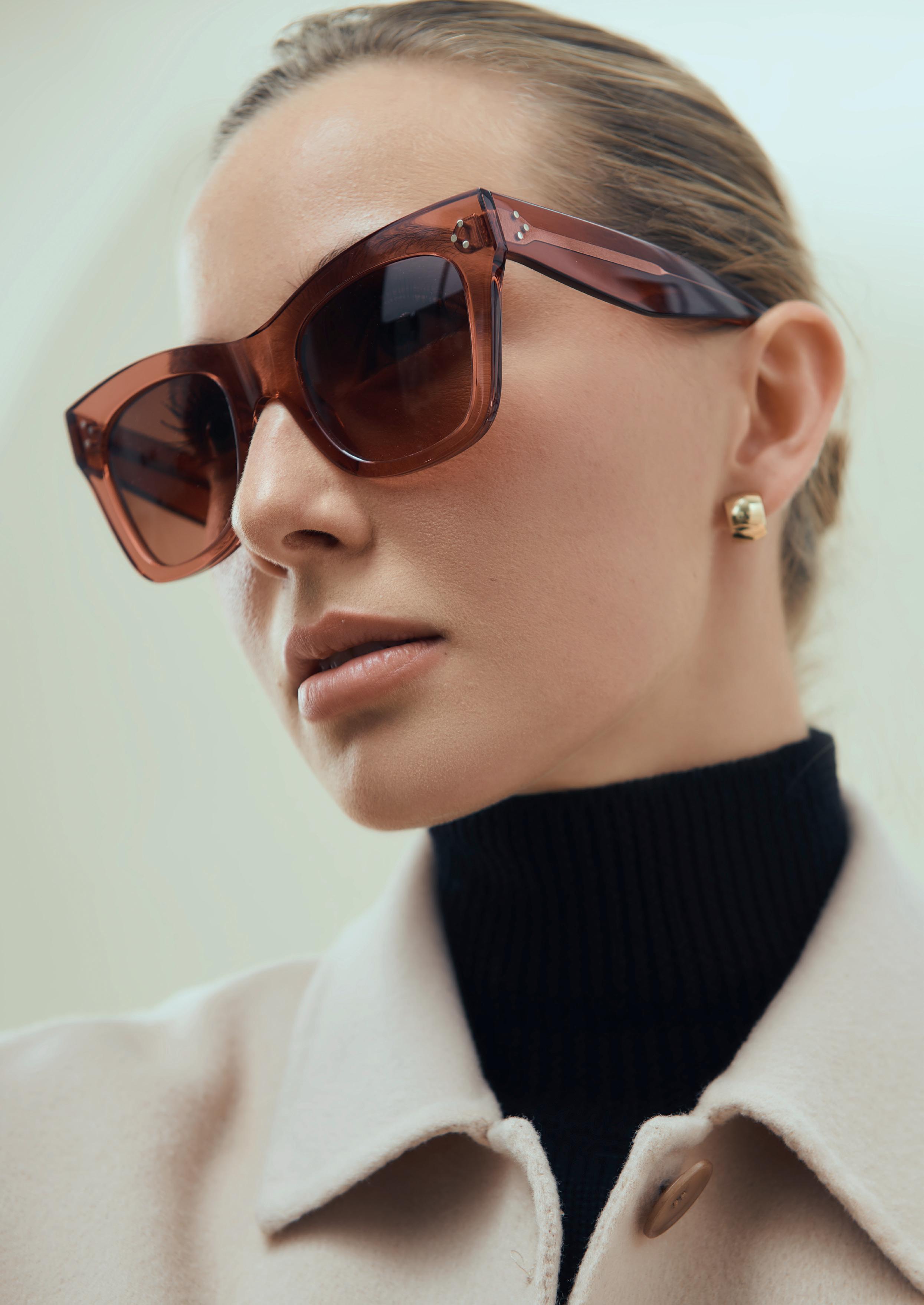 Die unabhängige Brillenmarke aus Barcelona kreiert farbenfrohe Designs aus natürlichen Acetat- und Mineralgläsern. Diese Sonnenbrille ist dabei definitiv ein Statement und steht für ein selbstbewusstes und lässiges Auftreten.
