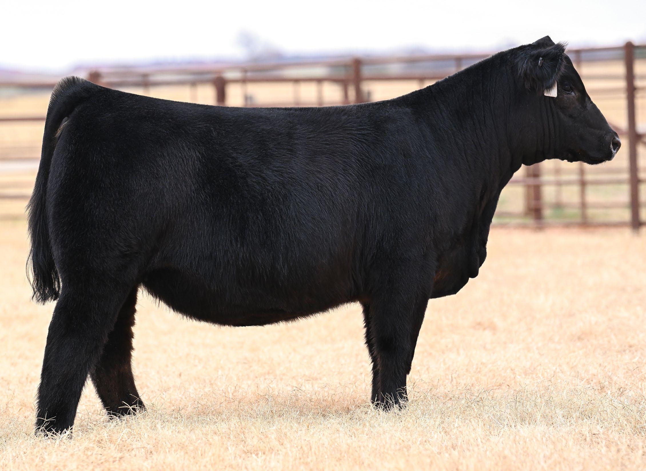 • A true sale feature that is a flashy, good-looking heifer bound to generate a buzz in the showring. She is great in her body shape, wide chested, powerful out of her hip and still flexible off both ends of her skeleton. She is high-headed and super stylish, while still being bold and functional in her basic design.