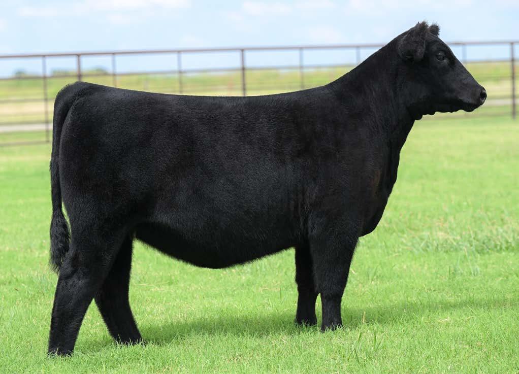 • Power runs deep in this white flanked heifer. Her impressive look from the side is only enhanced by her added stoutness and body dimension. She is wide chested, bold bodied and big footed. To compliment this, when set in motion she is long striding, true moving and flexible.