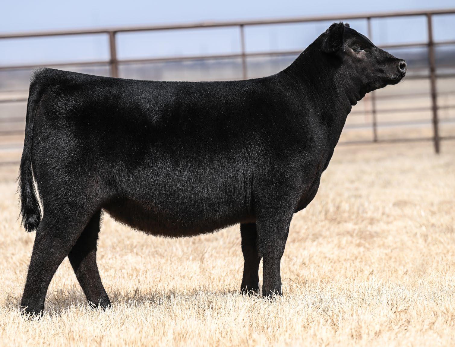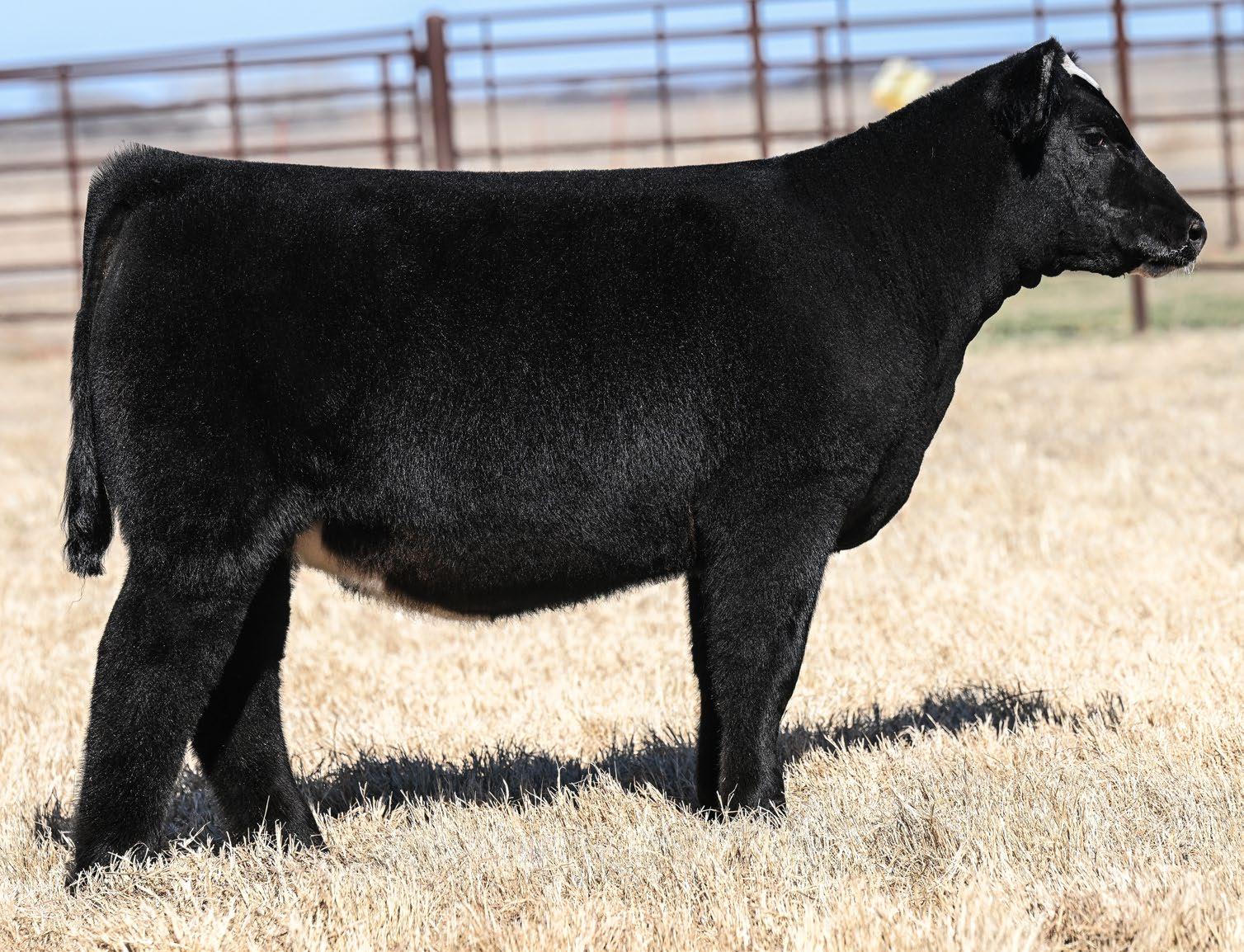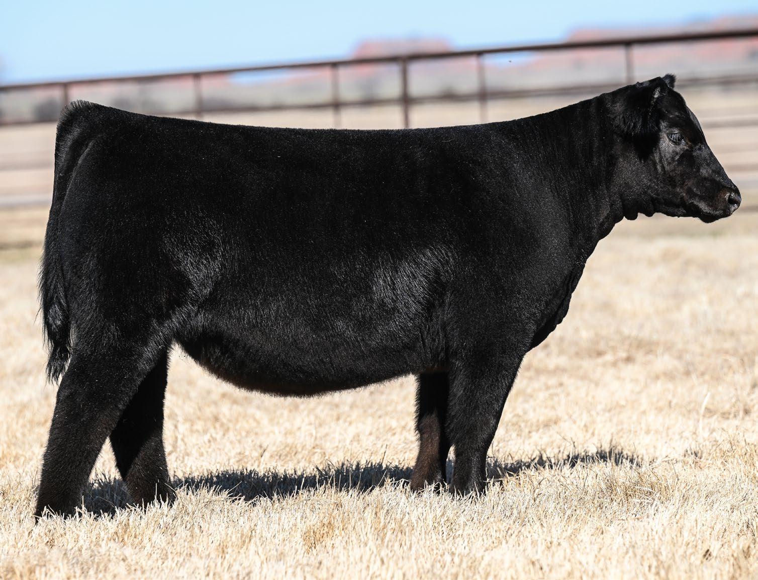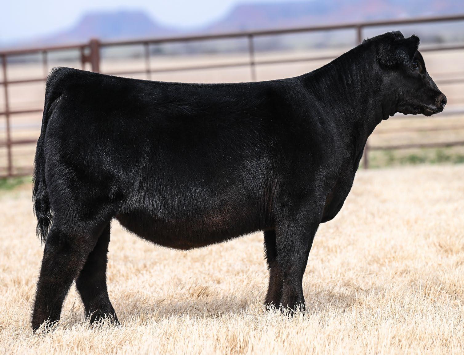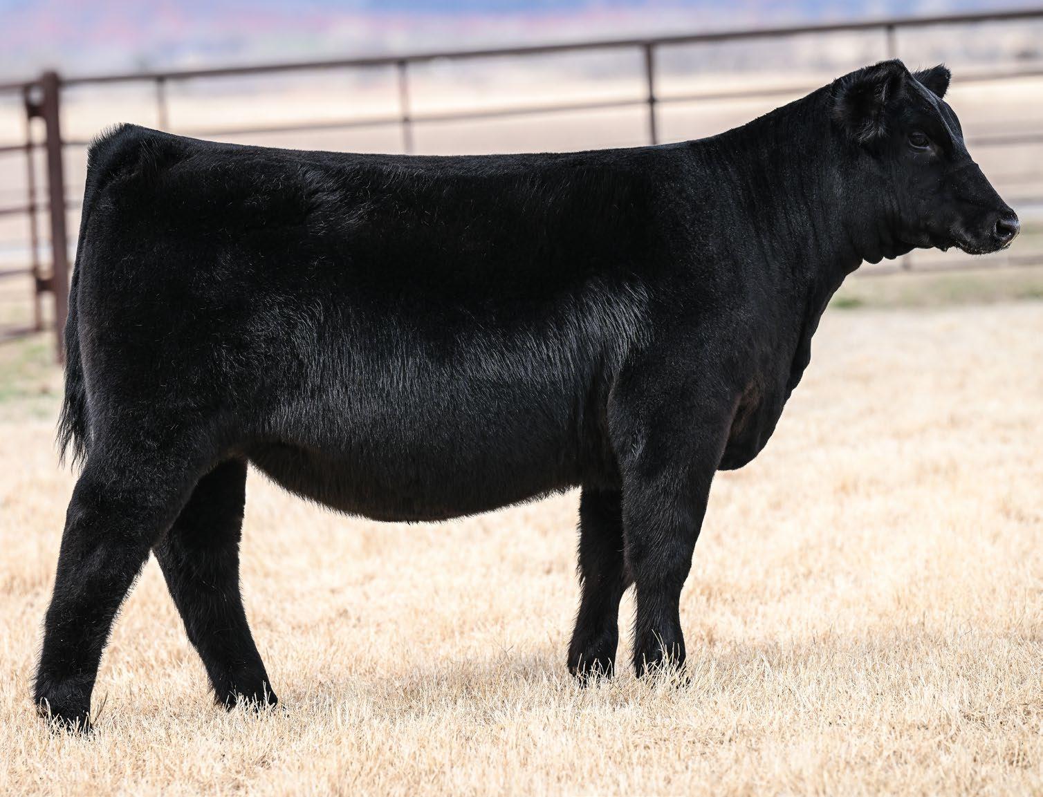 • Here is a well-balanced, good-built heifer that offers the right kind of body type for production profitability. Additionally, her added look up front enhances her appeal, while her ease in mobility suggests long-term value.