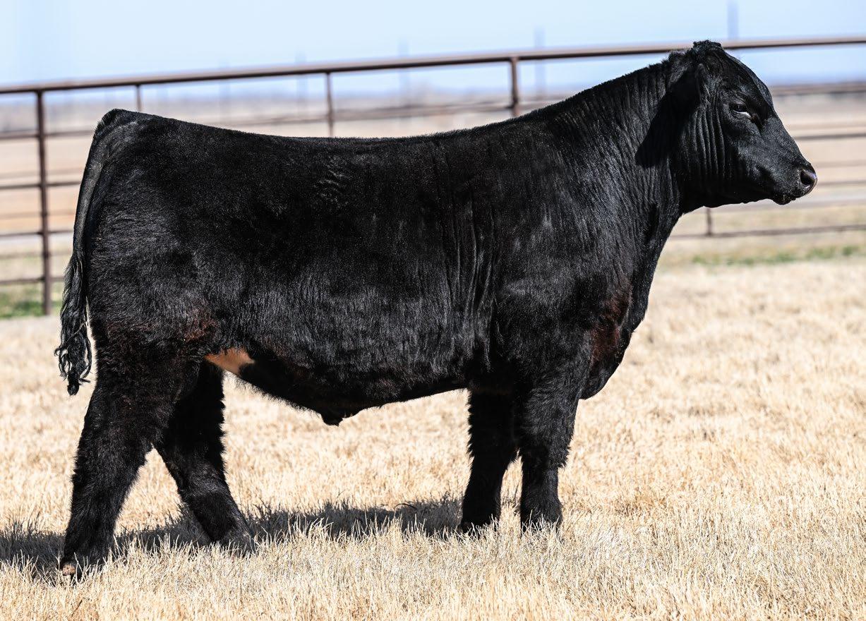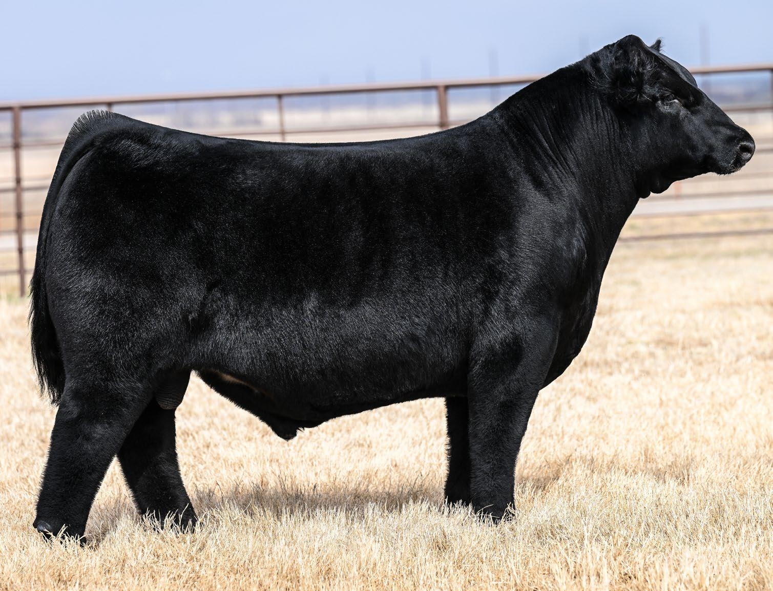 • This is a stout featured Angus bull that offers width of base, length of neck and added power. His body type reads of practicality, and his extra shape suggests transmitting power and performance to offspring.