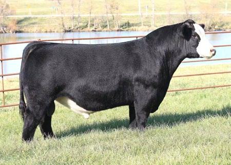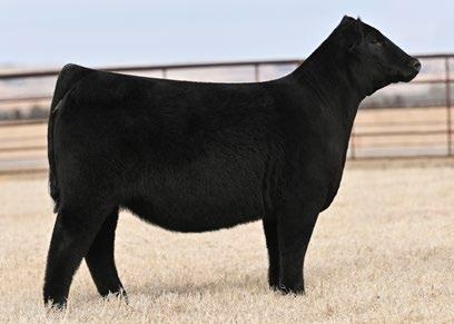 • Here is a powerfully constructed, bold bodied heifer that offers the added shape, width and dimension needed to compete in the Commercial/AOB/Market heifer realm and one that would be a perfect candidate for the American Royal Steer Momma Show. Her captivating look from the side highlights length and extension, round rib shape and extra depth of body. Additionally, this stout featured heifer is wellbalanced and offers a unique color pattern.