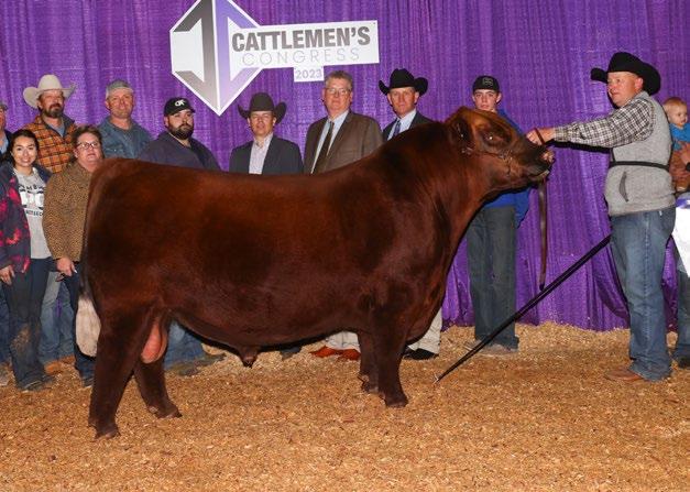 • The sire of lots 60A, 60B, and 61, RED DIAMOND EL REY 102, was named Supreme Champion at the 2023 Cattlemen’s Congress and National Champion Red Angus Bull after first being named Champion Red Angus Bull at the 2022 NWSS and the 2022 FWSS and has become a leading Red Angus sire with progeny topping sales and winning shows around the country.